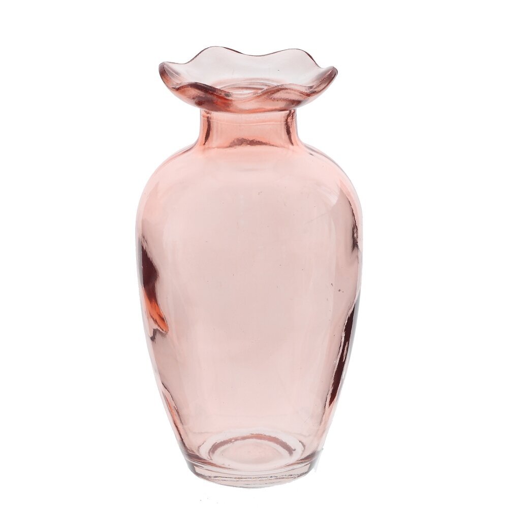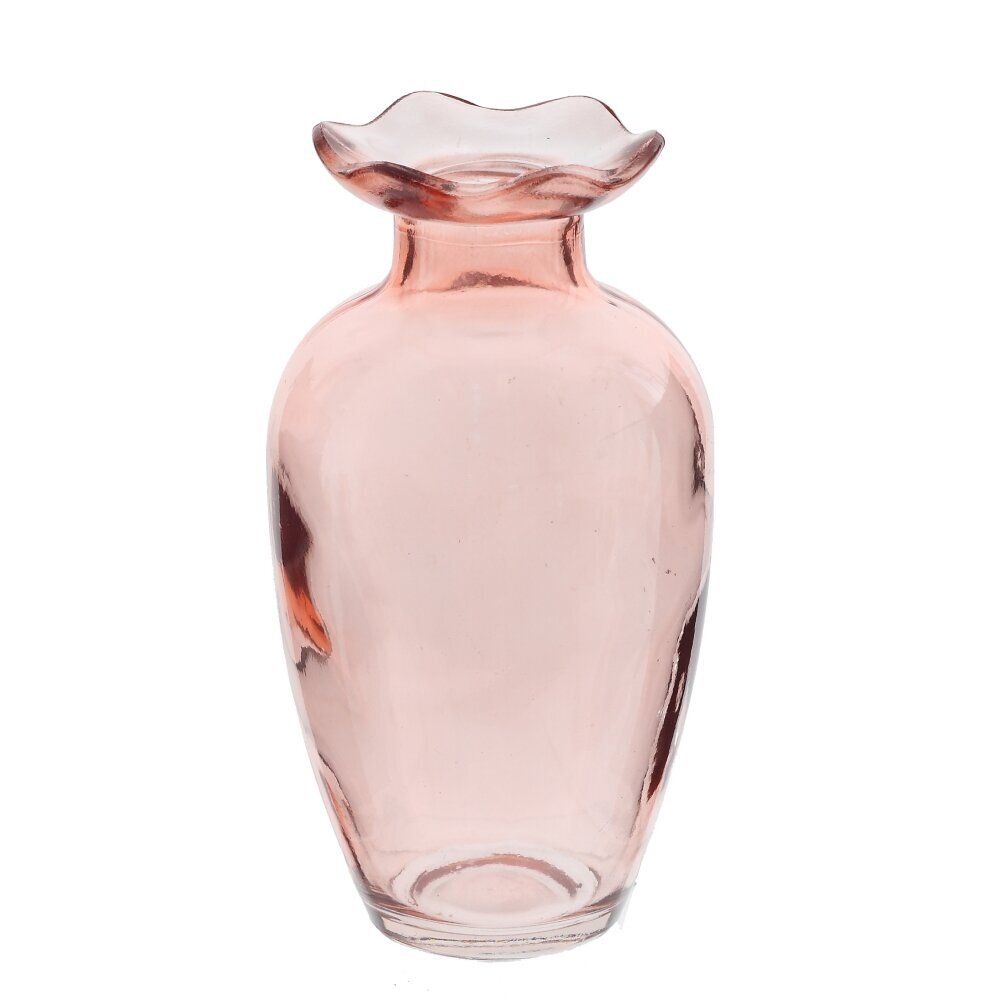 Стеклянная мини-ваза объёмом 280 мл – изящный акцент для любого интерьера. Выполнена из прозрачного стекла нежного розово-персикового оттенка. Классическая округлая форма сочетается с волнистым краем горлышка, благодаря чему ваза смотрится особенно утончённо. Подходит для небольших букетов, отдельных цветов, сухоцветов или декоративных композиций. Компактный размер позволяет легко разместить её на рабочем столе, прикроватной тумбочке, подоконнике или полке. Ваза гармонично впишется в современный, скандинавский, романтичный или классический стиль и станет приятным подарком к любому случаю. Диаметр горловины: 2.5 см.