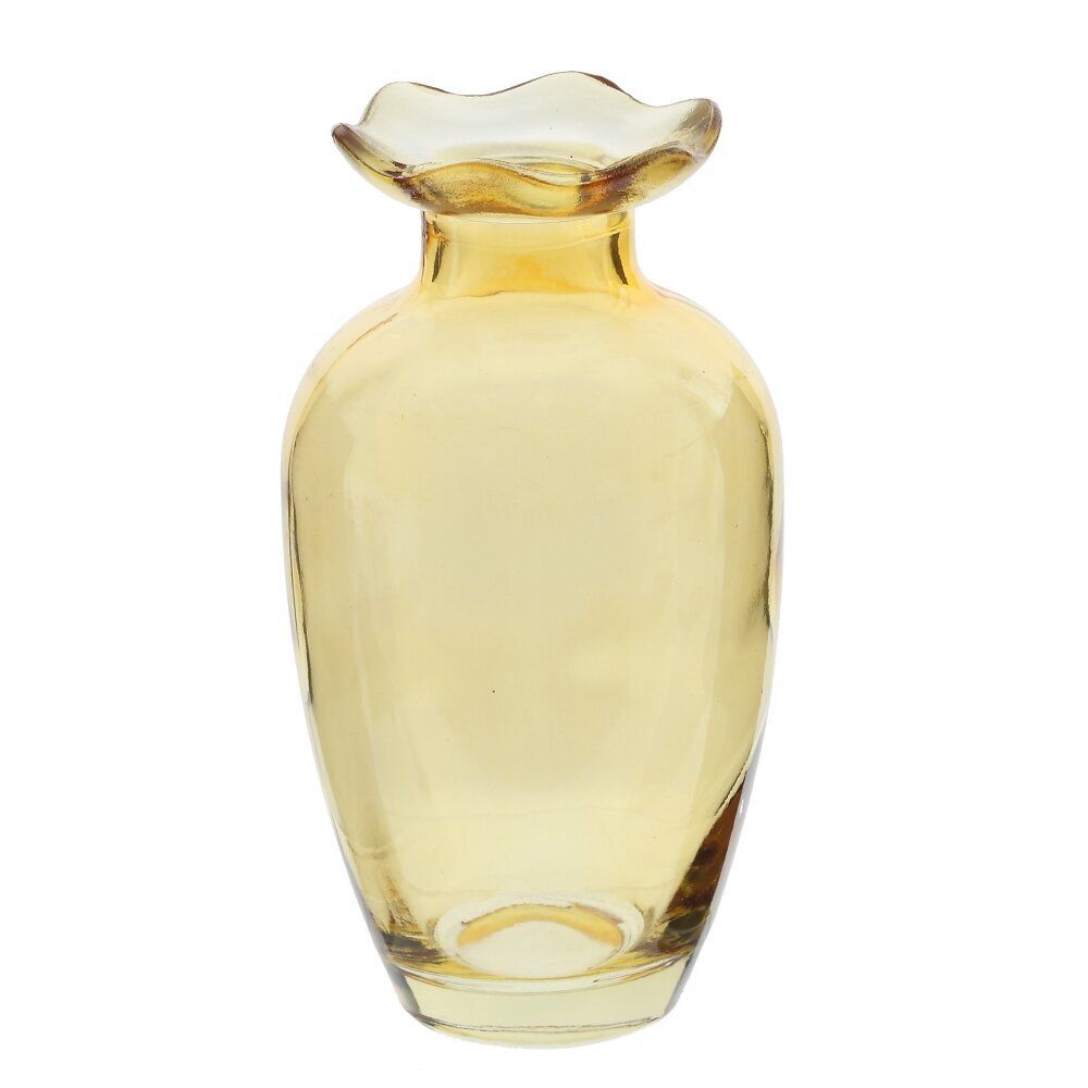 Стеклянная мини-ваза объёмом 280 мл – изящный акцент для любого интерьера. Выполнена из прозрачного стекла нежного зелено-желтого оттенка. Классическая округлая форма сочетается с волнистым краем горлышка, благодаря чему ваза смотрится особенно утончённо. Подходит для небольших букетов, отдельных цветов, сухоцветов или декоративных композиций. Компактный размер позволяет легко разместить её на рабочем столе, прикроватной тумбочке, подоконнике или полке. Ваза гармонично впишется в современный, скандинавский, романтичный или классический стиль и станет приятным подарком к любому случаю. Диаметр горловины: 2.5 см.