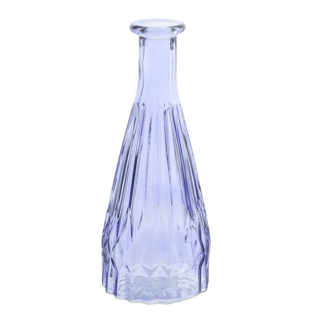 Стеклянная ваза объёмом 430 мл – изящный акцент для современного интерьера. Выполнена из прозрачного стекла с мягким фиолетовым оттенком. Удлинённая конусообразная форма с узким горлышком подчёркнута вертикальными рельефными гранями, которые красиво преломляют свет и придают изделию игру бликов. Подходит для одной?двух веточек, полевых или сухоцветов, а также как самостоятельный декоративный объект на полке, подоконнике или сервированном столе. Компактный размер позволяет легко сочетать вазу с другими элементами декора и использовать в композициях. Диаметр горловины: 2 см.