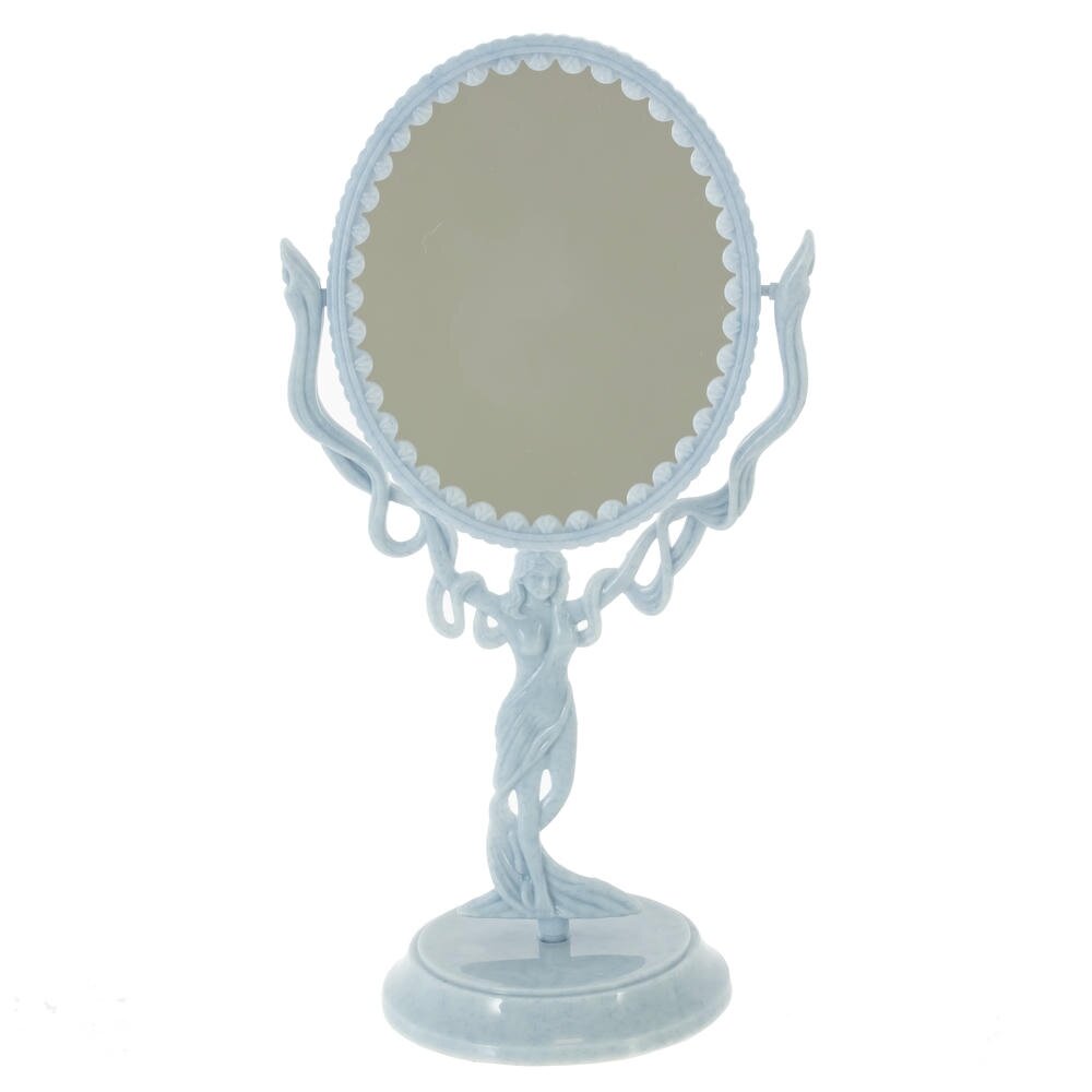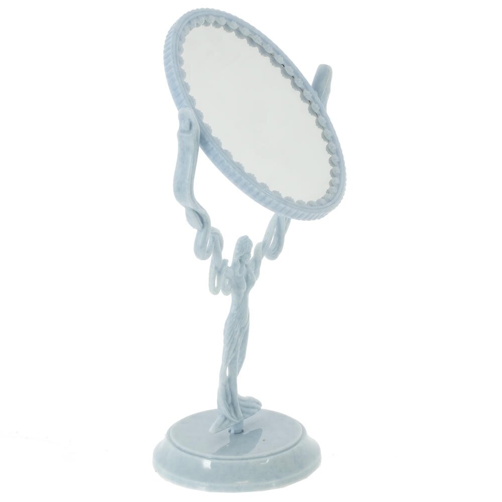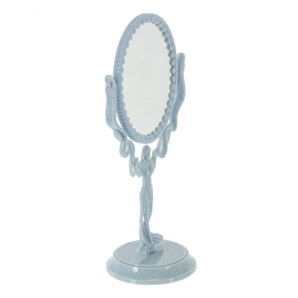 Настольное двустороннее зеркало – изящный аксессуар в классическом стиле, который станет украшением любого туалетного столика. Овальное зеркало закреплено в оригинальной раме с волнистыми линиями, поддерживаемой фигурой стройной женщины, что придает изделию утончённый, почти сказочный вид. Плавные изгибы и аккуратные декоративные элементы создают ощущение легкости и элегантности. Зеркало удобно использовать для ежедневного макияжа, ухода за кожей и прически: его можно поворачивать, выбирая нужный угол обзора. Компактное основание прочно стоит на любой ровной поверхности, не занимая много места. Такое зеркало не только функционально, но и прекрасно впишется в интерьер спальни, ванной или будуара, подчёркивая индивидуальный стиль хозяйки.