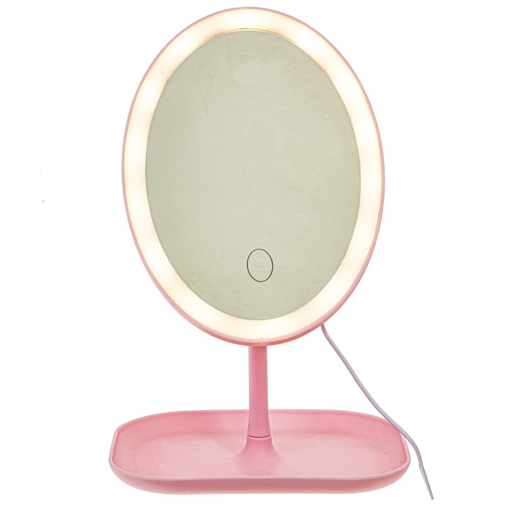 Зеркало настольное для макияжа имеет специальное регулируемое освещение. Благодаря этому, оно дает более четкое отражение. Прибор включается и настраивается с помощью сенсорной кнопки. USB кабель длиной 50 см.