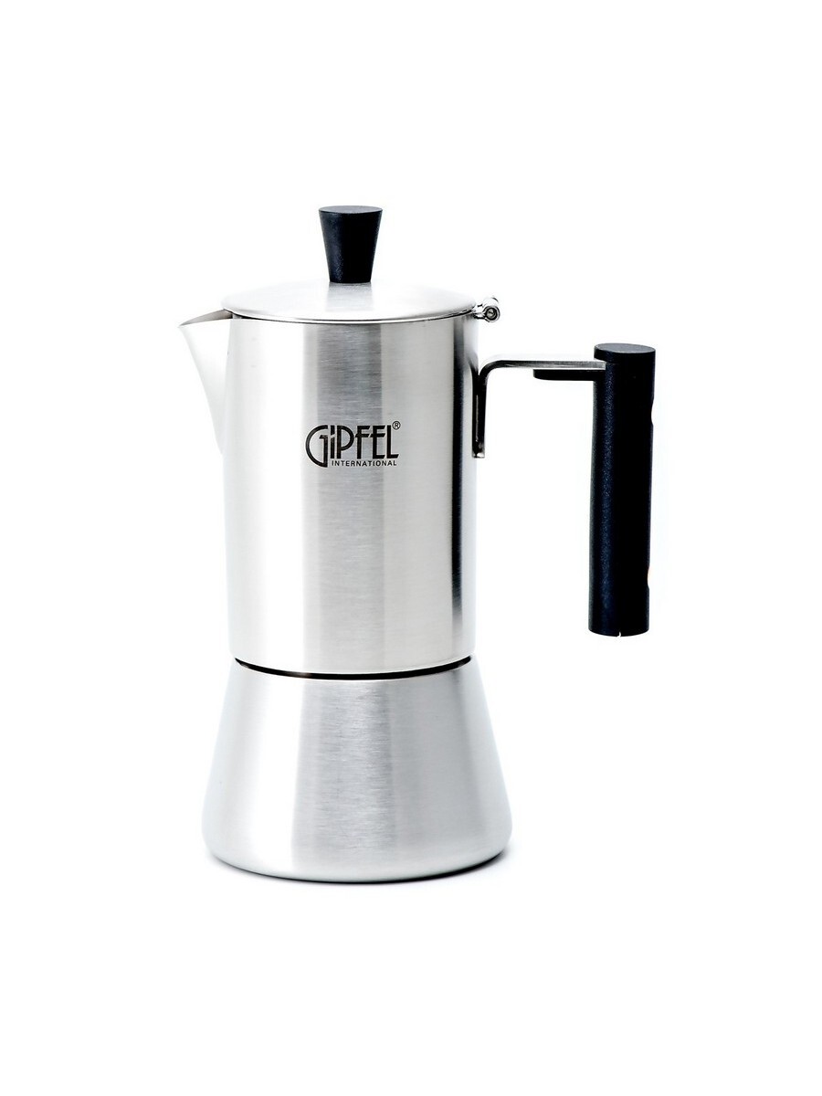 5392 GIPFEL Гейзерная кофеварка AZZIMATO 200мл/4 чашки Материал: S/S 18/8, S/S 18/0, ручка: нейлон+s/s.