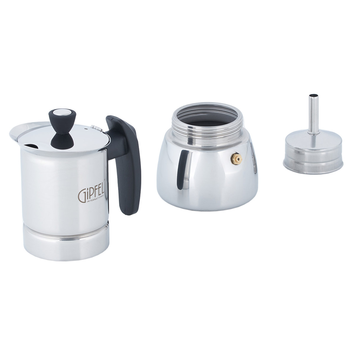 Кофеварка гейзерная Gipfel Vals 5328 объемом 200 мл. Этого объема ориентировочно хватает чтобы приготовить кофе на 2-4 кофейные чашки 50 мл.