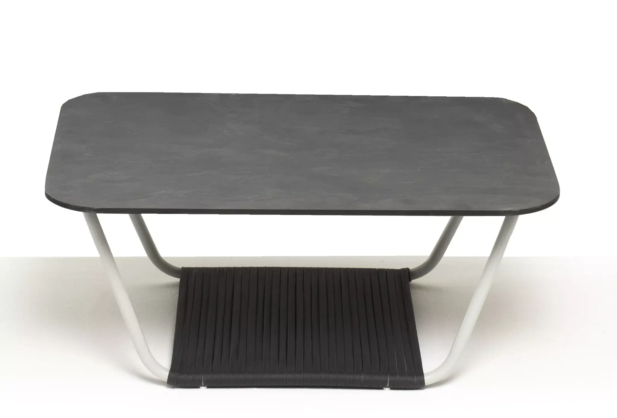 Прочная столешница выполнена из высококачественного монолитного компакт-пластика HPL цвет «серый гранит». Толщина материала 12 мм. Каркас − из алюминиевого профиля, окрашенного в белый цвет.