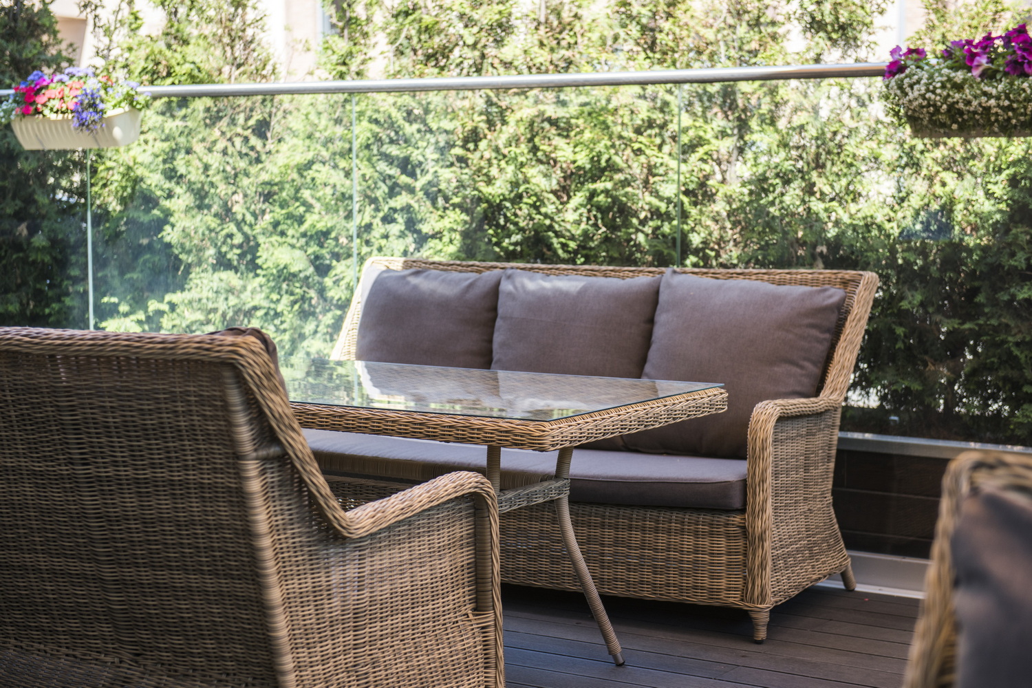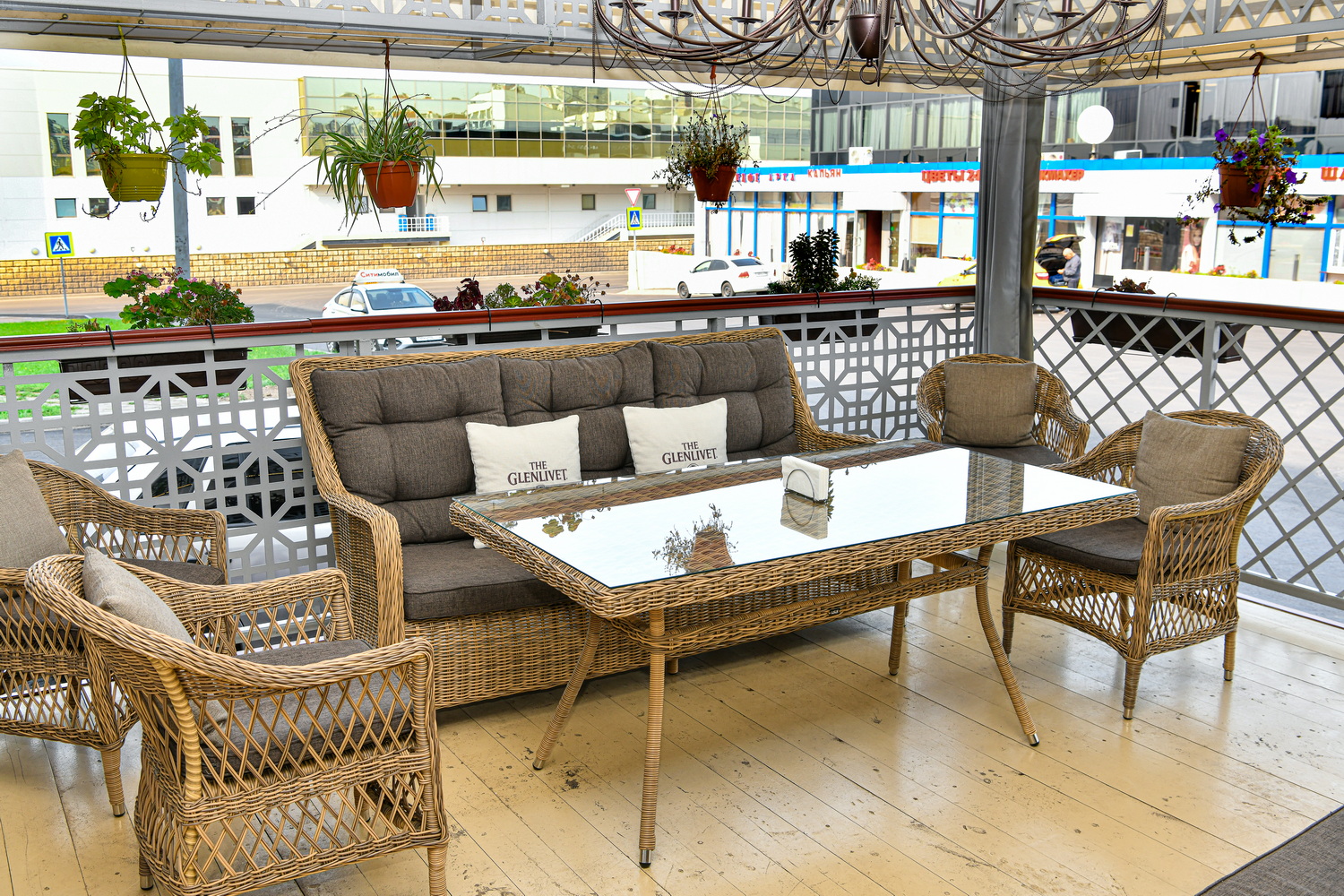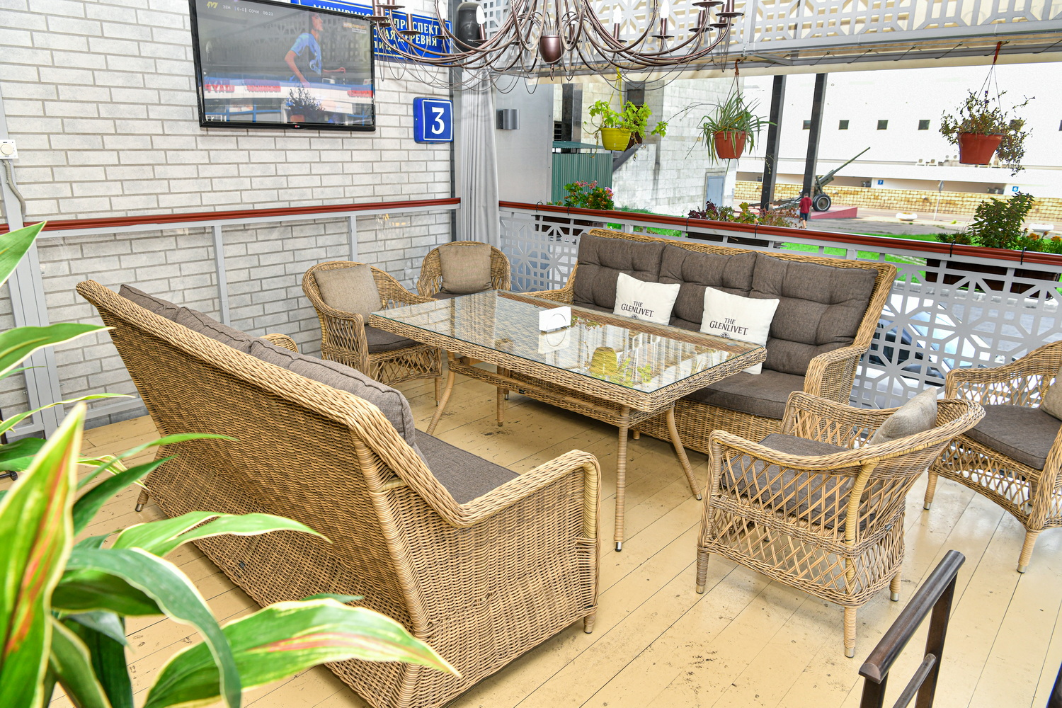 Диван «Гляссе» подходит для размещения сразу трех персон. Его основа из прочного алюминиевого каркаса. Размер модели – 1900×880×990 мм.