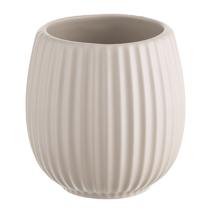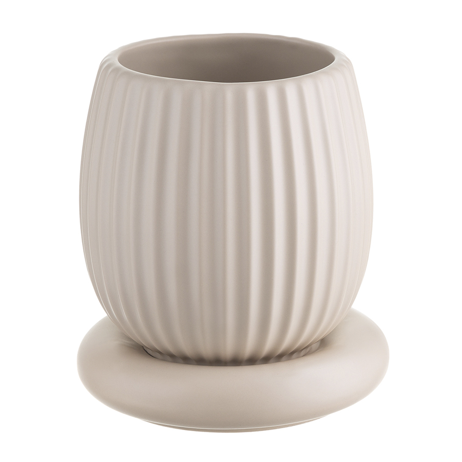 Горшок цветочный кремового цвета из коллекции Edge хорошо подойдет для небольших комнатных растений и поможет привнести природу в дом. Изделие простой округлой формы с фактурными гранями отлично сочетается со свечами и вазами из этой же коллекции, позволяя создавать интересные интерьерные композиции. Горшок выполнен из доломита, устойчивого к сколам, легкого и экологически чистого материала, снаружи и внутри покрыт матовой глазурью, имеет дренажное отверстие в нижней части. Подстановочная тарелка входит в комплект поставки.