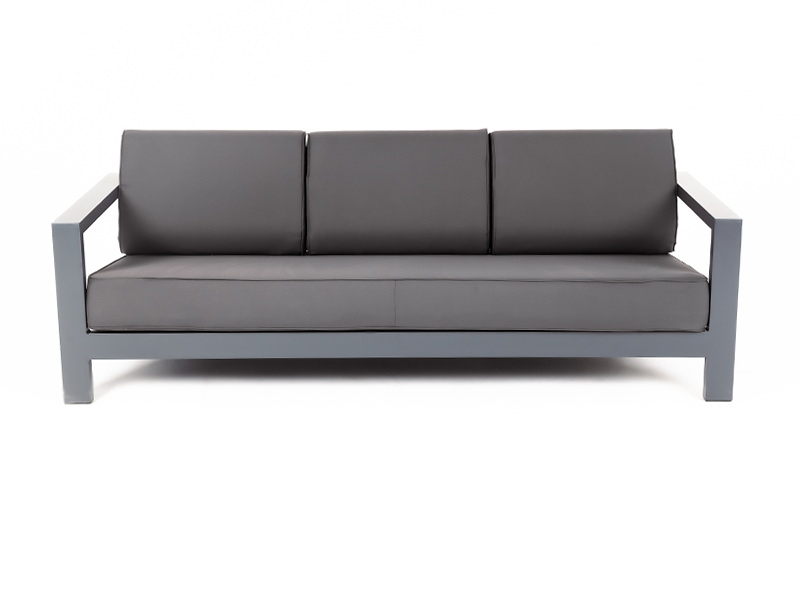 Стильный трехместный диван «Гранада» для обустройства зоны отдыха на балконе, в кафе или летней веранде. Каркас изготовлен из высокопрочного алюминия темно-серого (RAL7024) цвета.