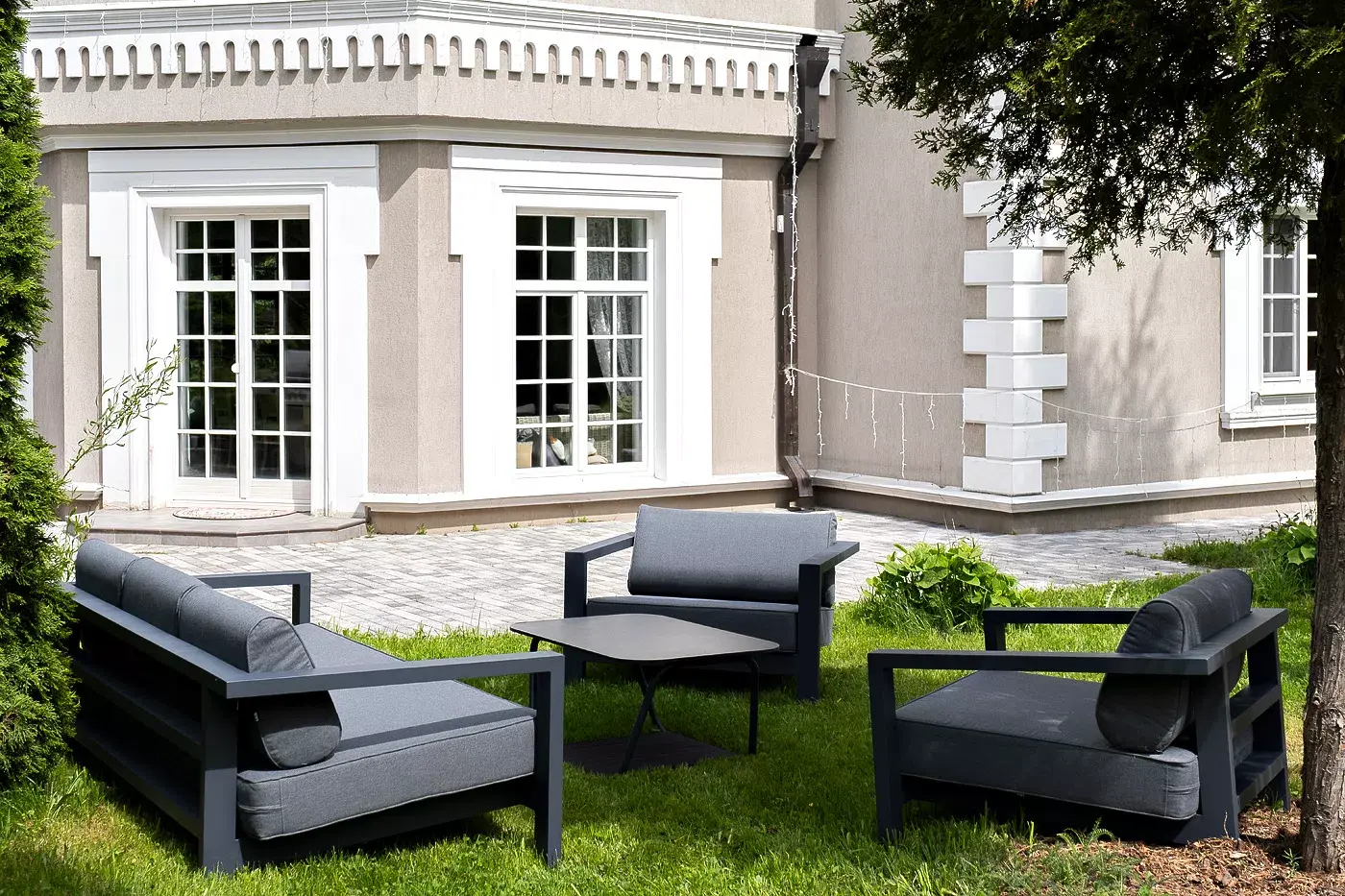 Лаунж-зона «Гранада» − функциональный комплект мебели, который может использоваться в качестве уютного уголка отдыха на открытом воздухе.