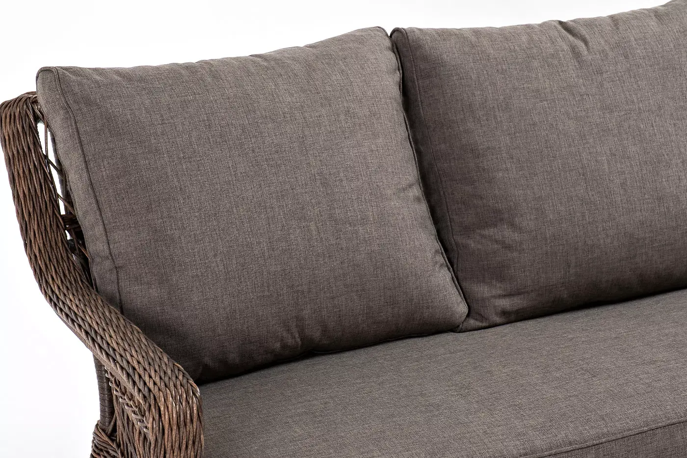 В комплект к дивану входят подушки. Съёмные чехлы для них выполнены в сером цвете. Они пошиты из износостойкого полиэстера, плотность которого составляет 300гр/м2. Предусмотрена влагоотталкивающая пропитка, улучшающая эксплуатационные свойства изделия.