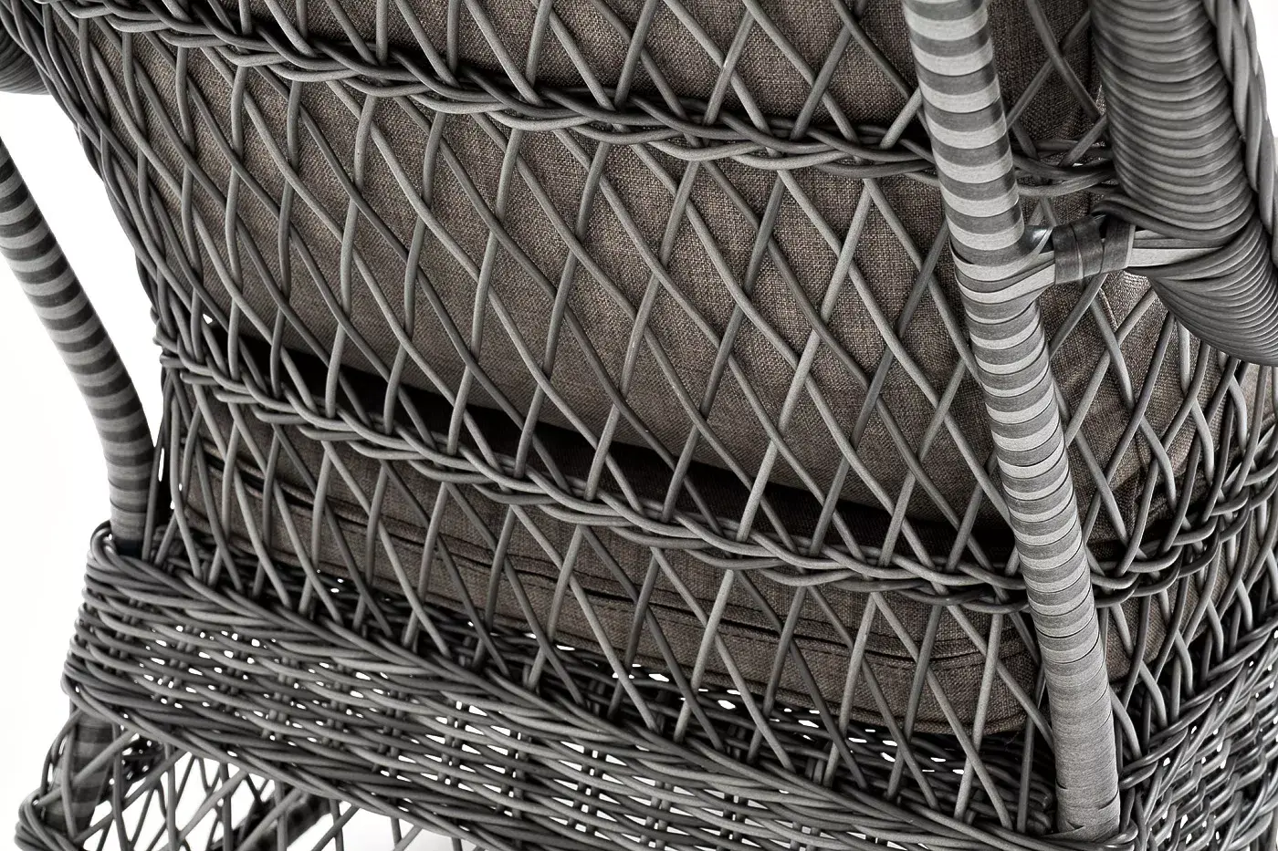 Кресло изготовлена из устойчивого алюминиевого каркаса. Искусственный ротанг украшает мебель в качестве круглого ручного плетения. Оно представлено в цвете "графит".