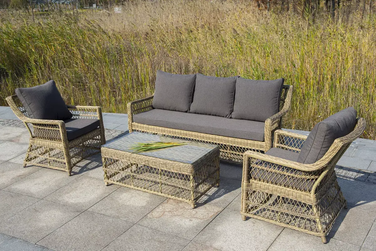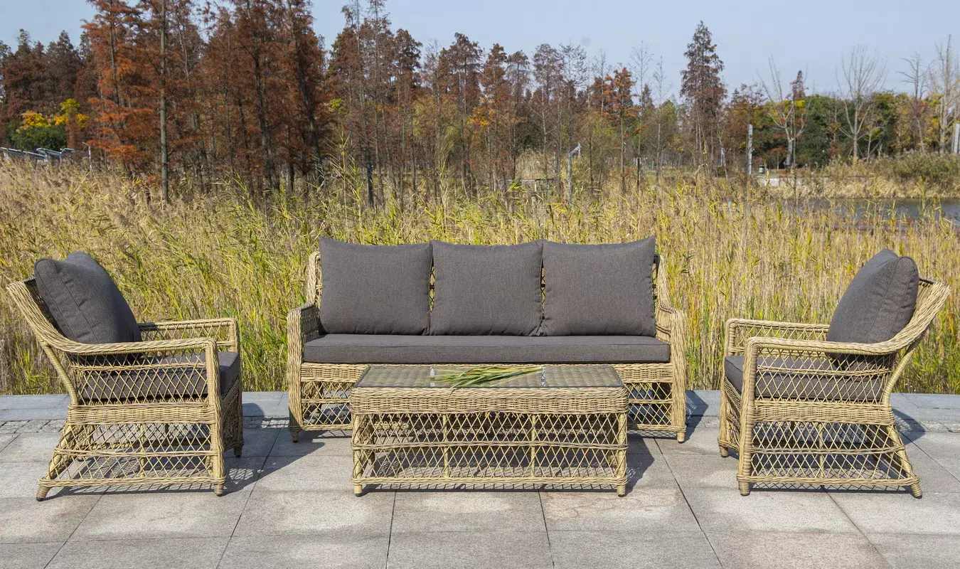 Журнальный столик «Гранд Латте» гармонично вписывается в зону отдыха, обустроенную на свежем воздухе. Размер модели – 1120×570×450 мм.
