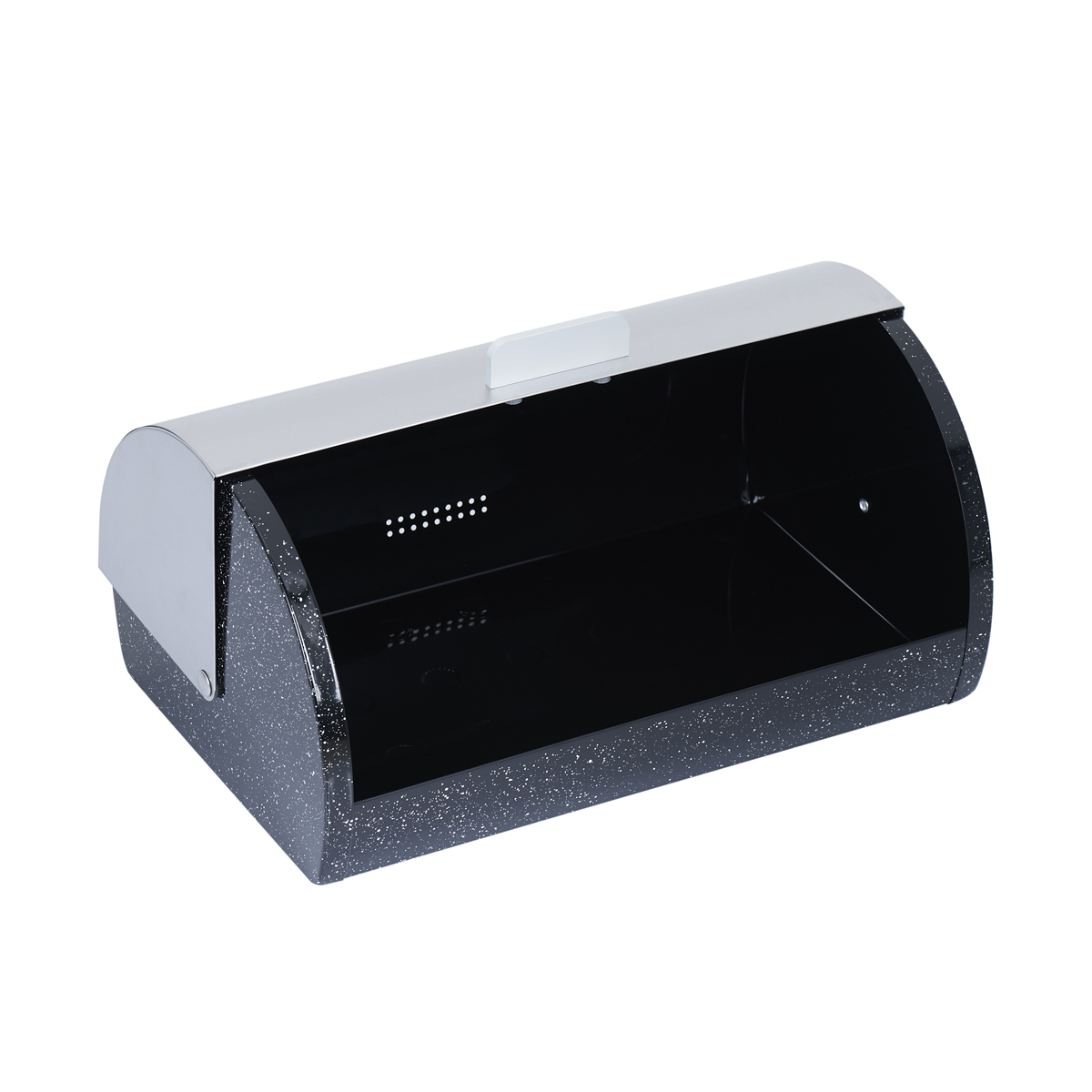 Хлебница GIPFEL 9785. Размер 39х28х19см. Модным дополнением кухни станет стальная хлебница Gipfel. Изготовлена из нержавеющей стали, совместимой с продуктами питания. С ним хлебобулочные изделия намного дольше будут оставаться свежими и ароматными. Обтекаемая форма и компактные размеры впишут хлебницу в любую обстановку на кухне. Сочетание цветов делает изделие модным и оригинальным. Основание конструкции выполнено в гранитном цвете, а крышка изделия — в матовом стальном. Компактная прямоугольная ручка на плотно прилегающей крышке облегчает задачу открытия закрытия.