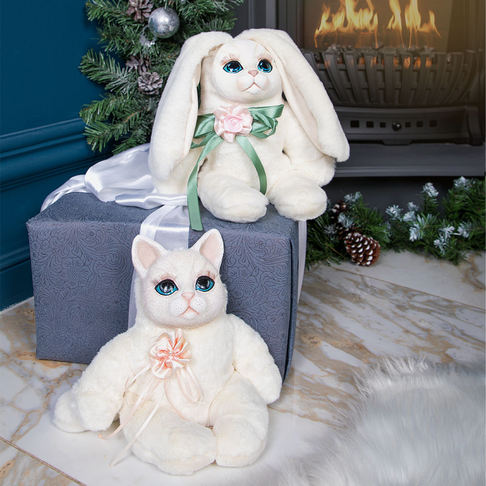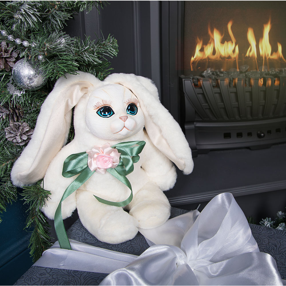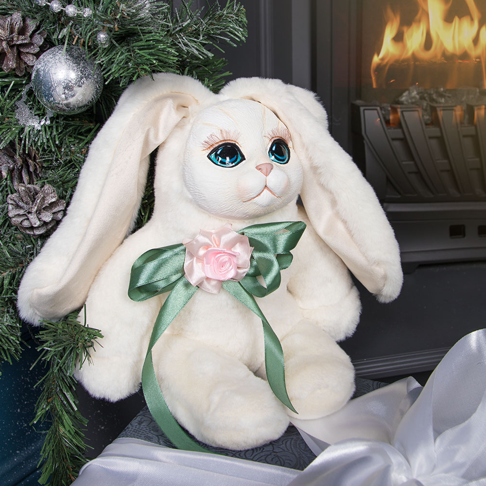 «Зайка моя...» – зовём мы наших любимых. Столько любви и нежности в этих словах. И такой же нежной получилась наша зайка Мими. Белоснежная шерстка, милые глазки, красивый цветок. Зайка станет любимицей, вам захочется её держать в руках, гладить мех, обнимать и брать с собой.Как Белый кролик стал для Алисы проводником в Страну чудес, так и наша Мими вокруг себя создает сказку.Белая зайка ручной работы станет отличным подарком девушке на день рождения, годовщину и без повода.В любом случае, Мими доставит много радости своему обладателю. С ней не захочется расставаться.Поверхность игрушки изготовлена из искусственного меха. Голова выполнена из литьевого мрамора. Наполнитель синтепух и минеральный грунт, который служит, как утяжелитель, благодаря чему игрушка может сидеть.