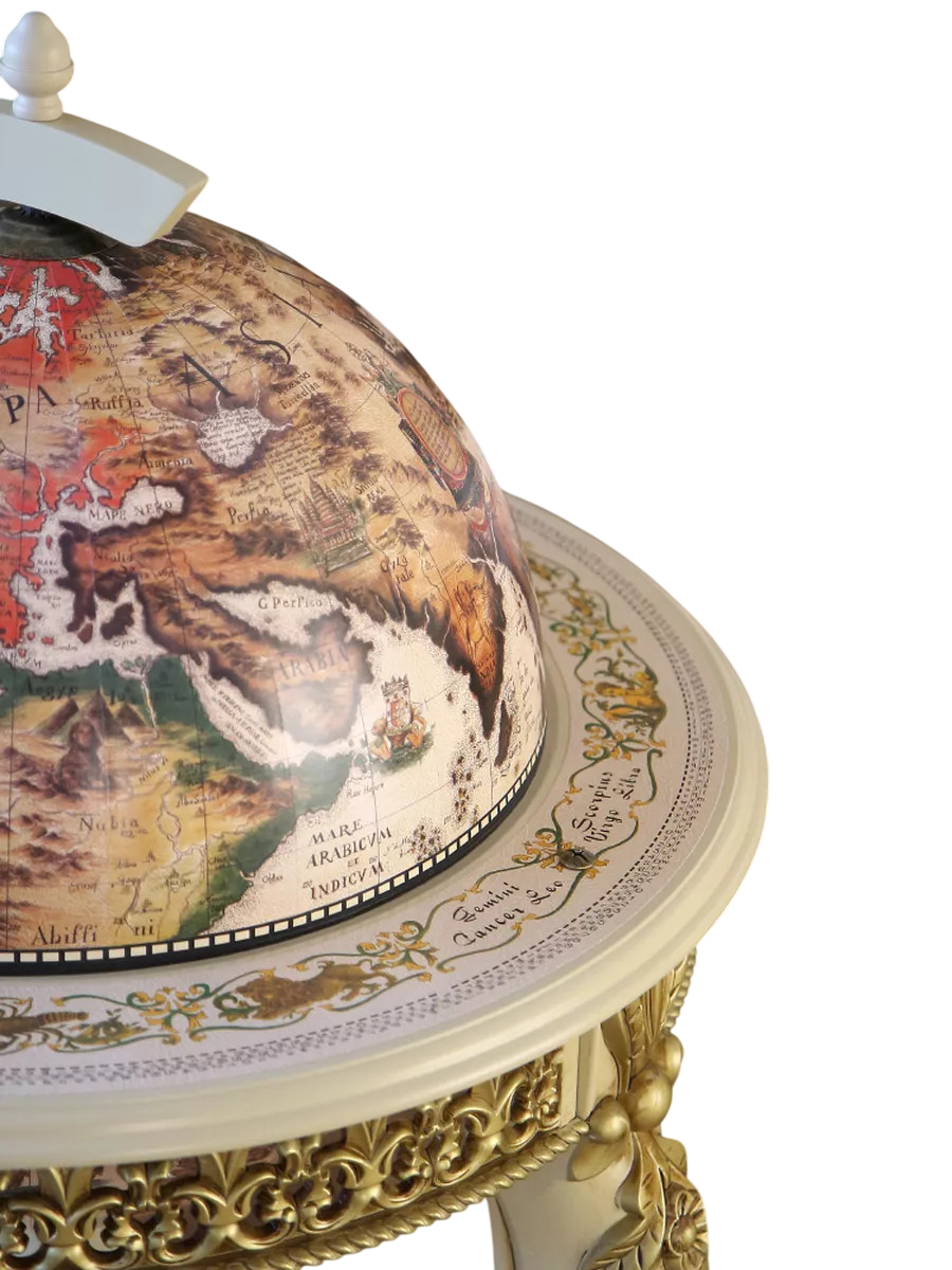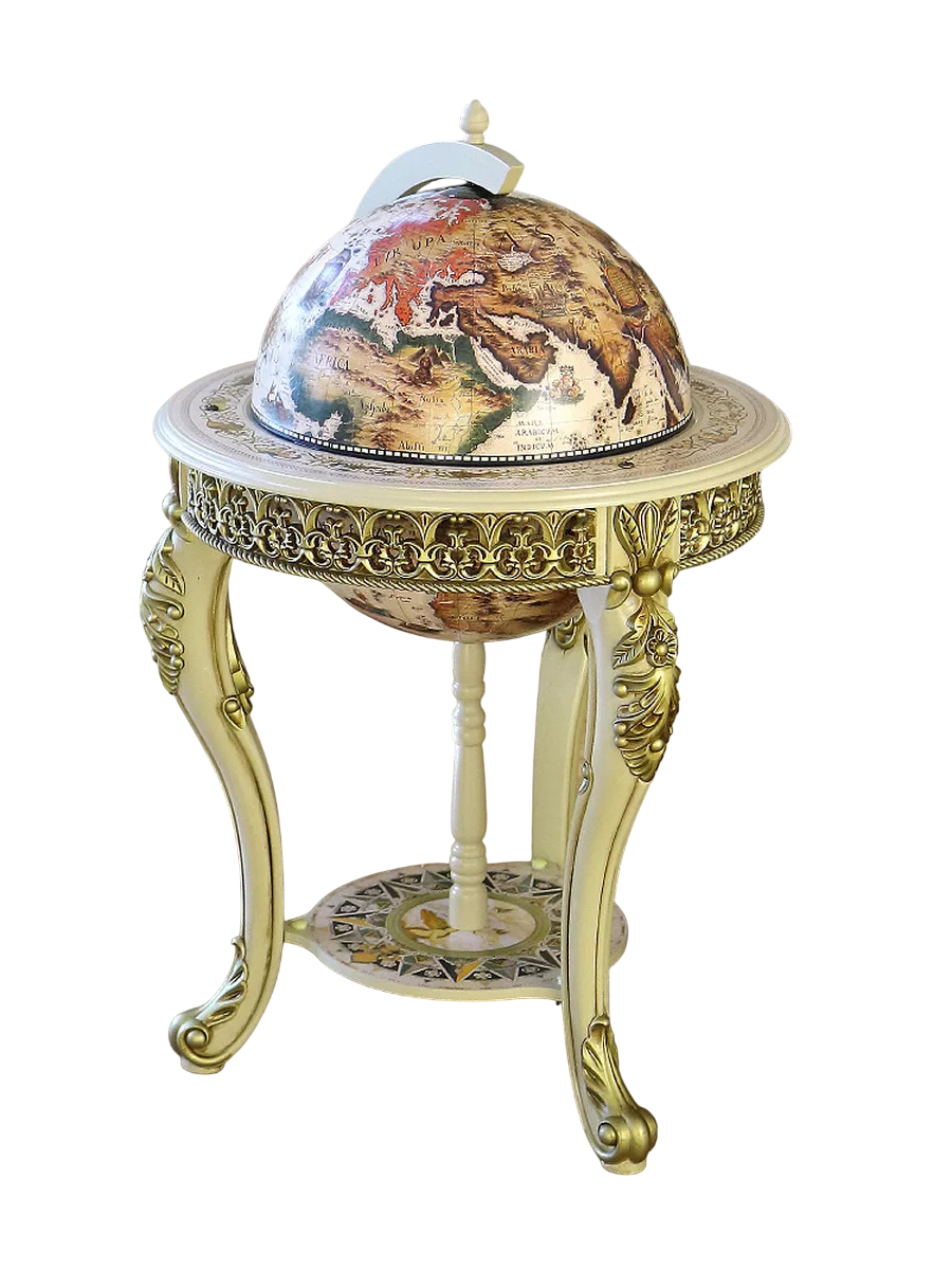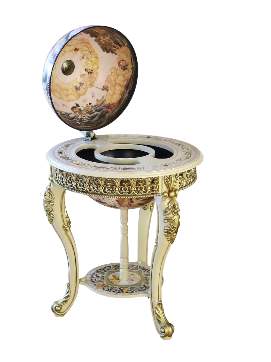 Глобус-бар напольный d 45, ч/б, на гнутых ножках с лепниной