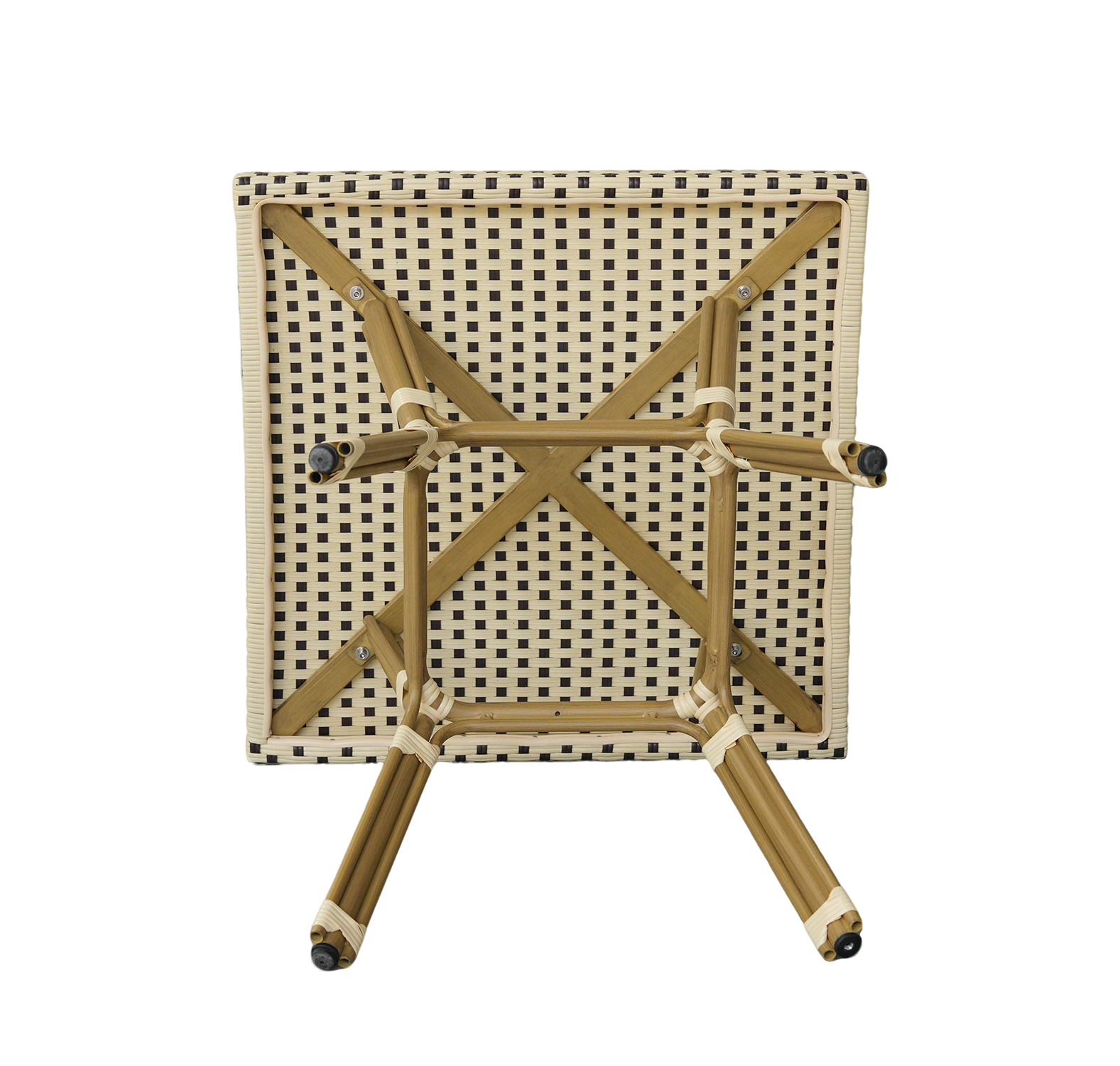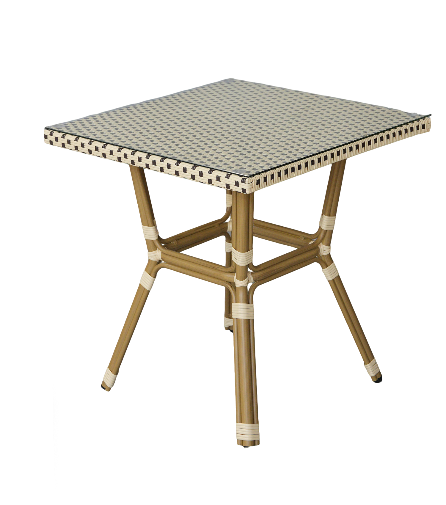 Ручное плетение из плоского искусственного ротанга размером 12×1,3 мм создает неповторимую текстуру и добавляет столу изысканности. Оригинальное бежево-коричневое цветовое решение оплетки придает столу современный и стильный вид, легко вписываясь в любой интерьер.