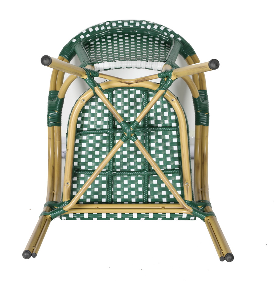 Плетение выполнено вручную из плоского искусственного ротанга 12х1,3 мм. Цвет оплетки - бело-зеленый.