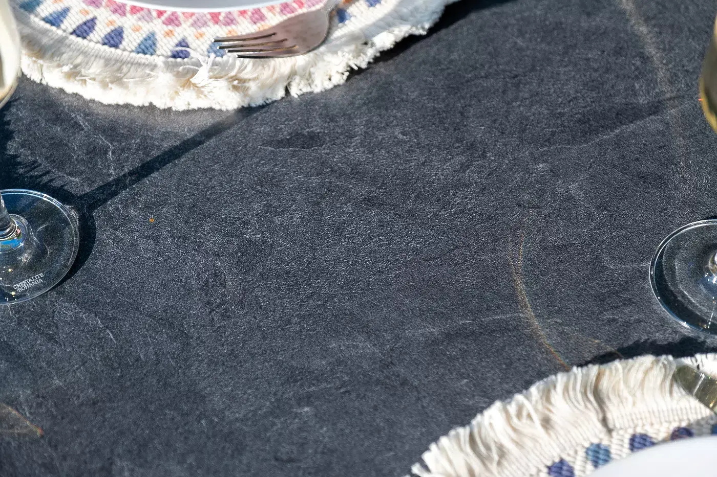 - Стол «Каффе» из HPL, размер столешницы - 140×70 см, цвет «серый гранит», подстолье двойное черное металл.