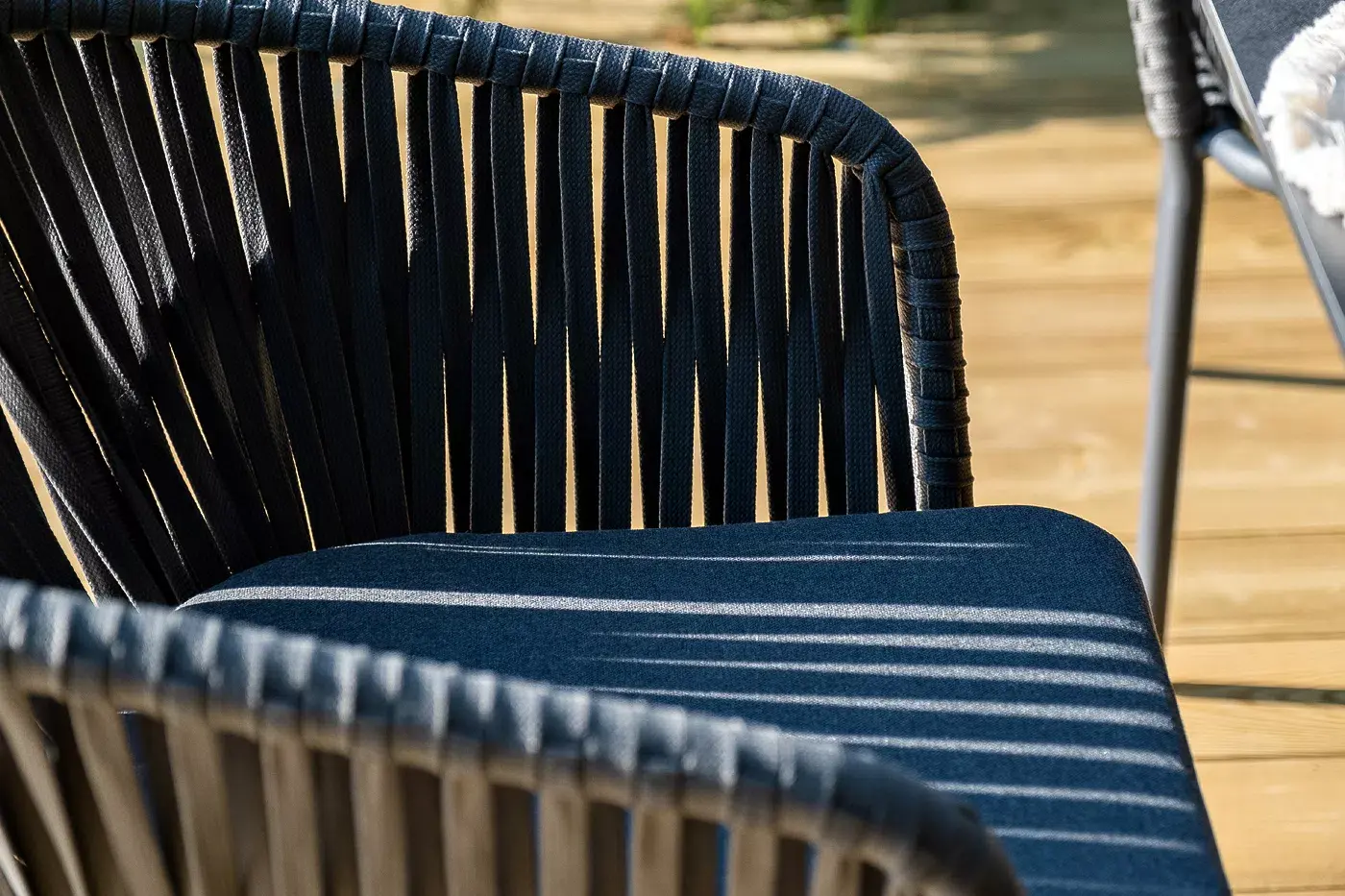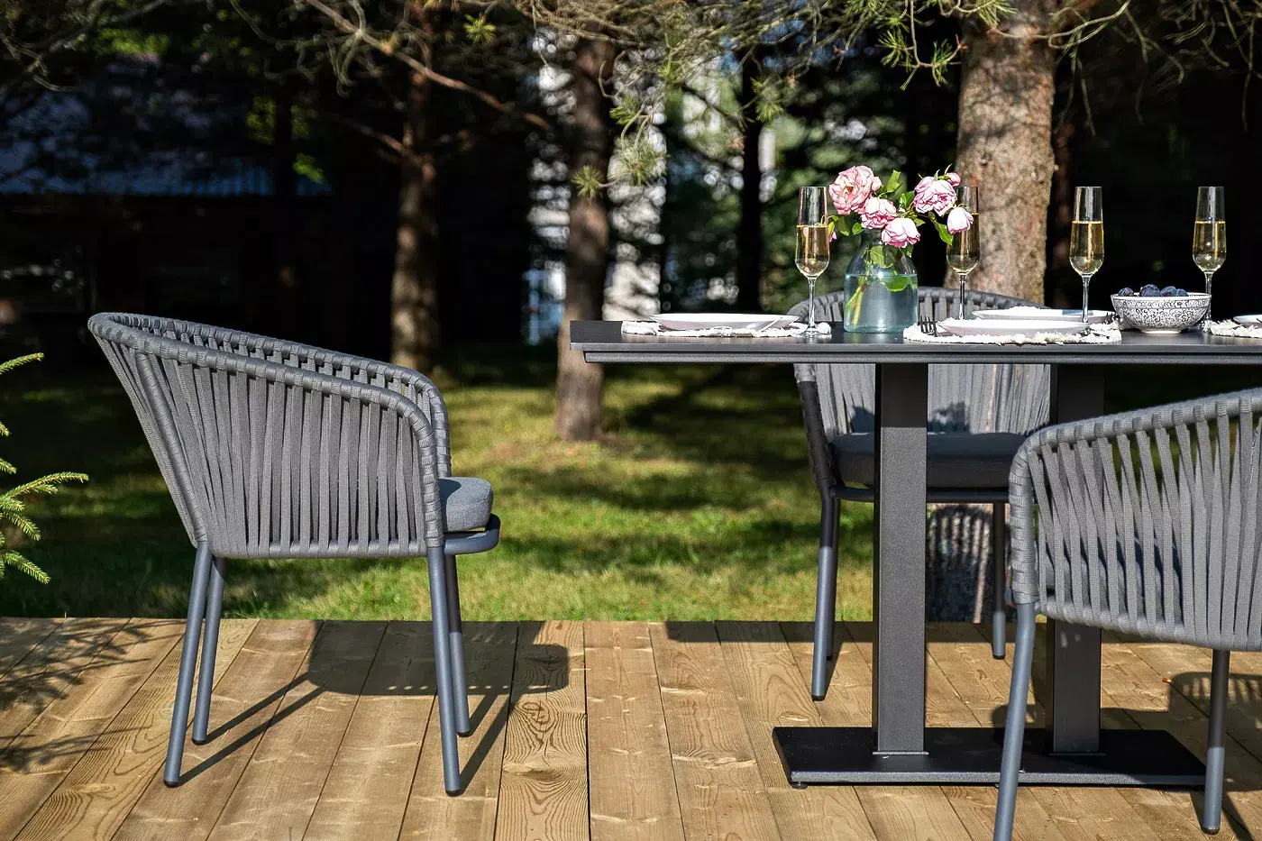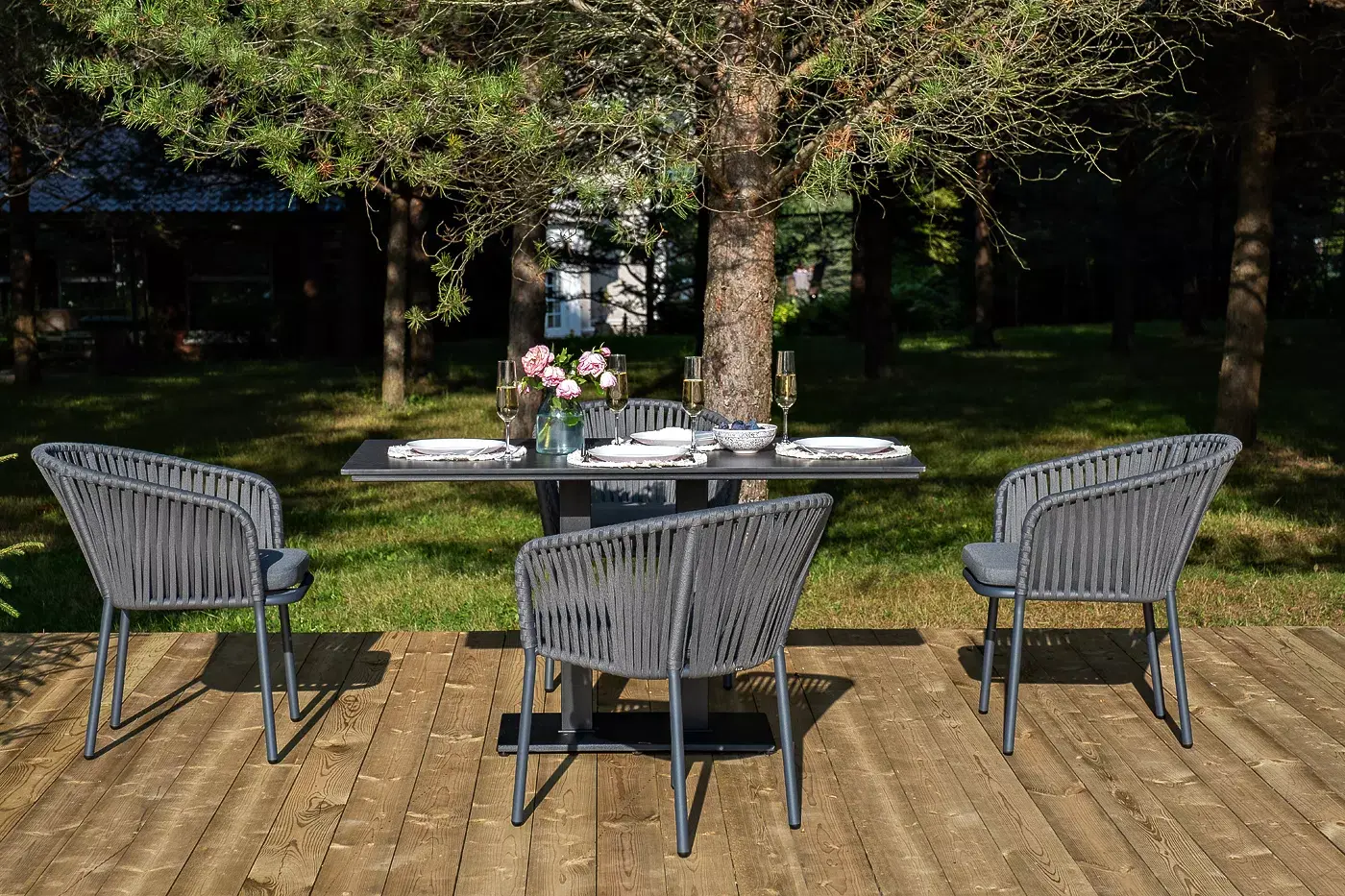 - 4 плетеных стула «Бордо» из плоского роупа, размером - 570×620×775 мм, цвет роупа - серый, каркас - темно-серый (RAL7024).
