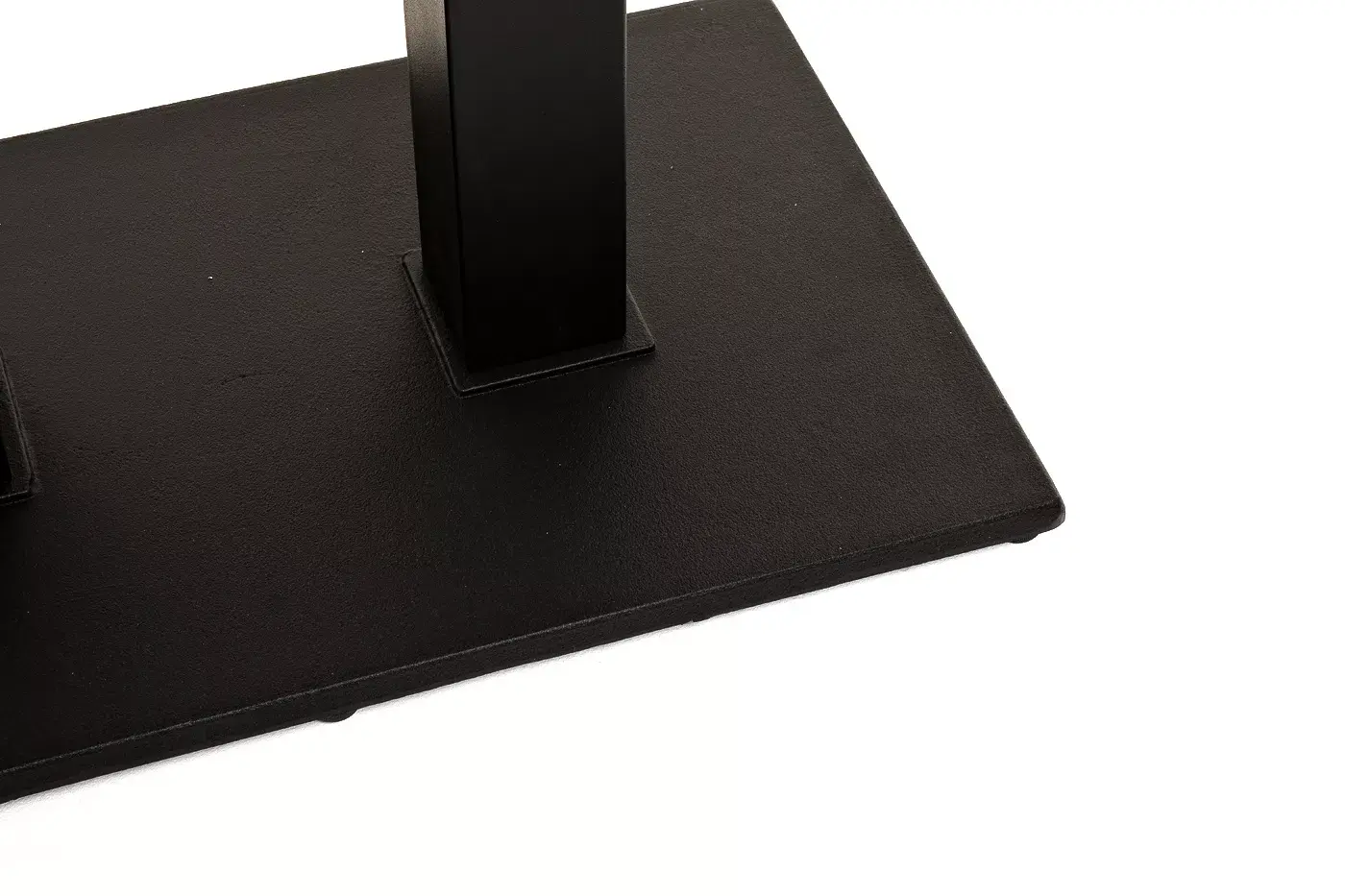 Двойное подстолье изготовлено из металла, столешница - из высококачественного монолитного компакт-пластик HPL, толщиной 12 мм, цвет «дуб».