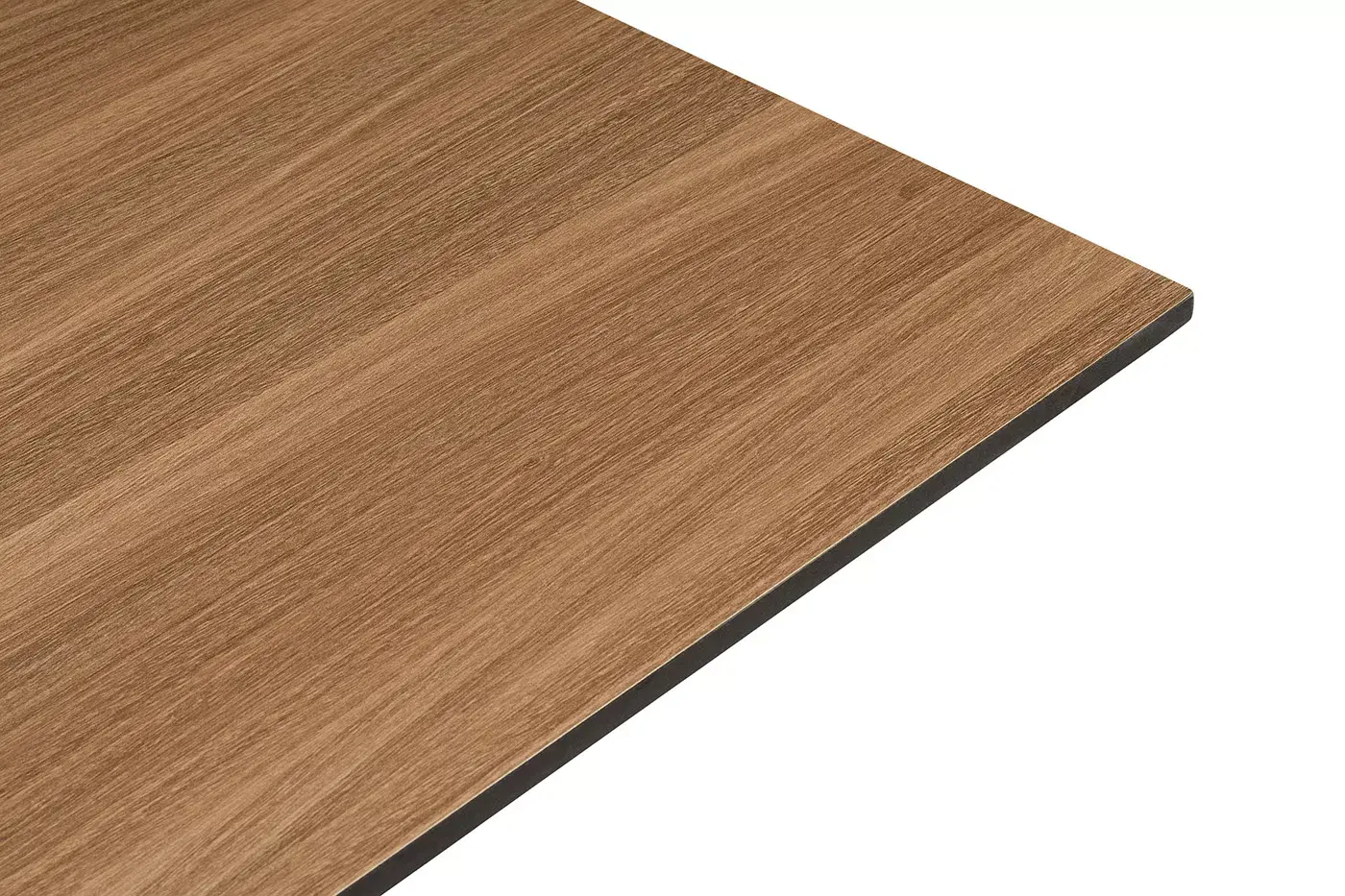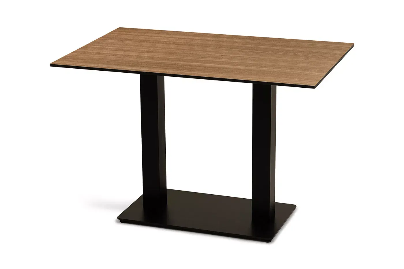 Двойное подстолье изготовлено из стали, столешница - из высококачественного монолитного компакт-пластик HPL, толщиной 12 мм, цвет «дуб».