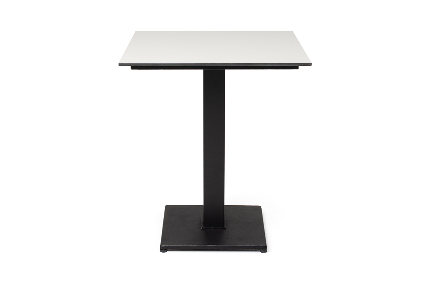Современный стол «Каффе» с квадратной столешницей, выполненной из высококачественного монолитного компакт-пластика HPL, толщиной 12 мм. Цвет поверхности стола – молочный.