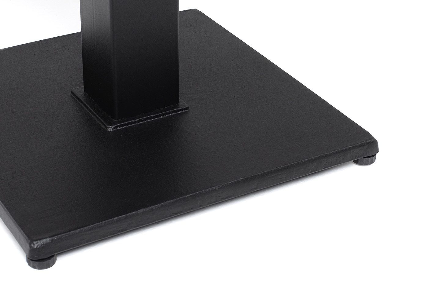 Подстолье изготовлено из чугуна черного цвета, с рамкой для крепления столешницы и широким основанием 400×400 мм. Благодаря использованию материалов, устойчивых к влаге, ультрафиолету и перепаду температур, стол можно использовать на открытом воздухе и в местах с повышенной влажностью.