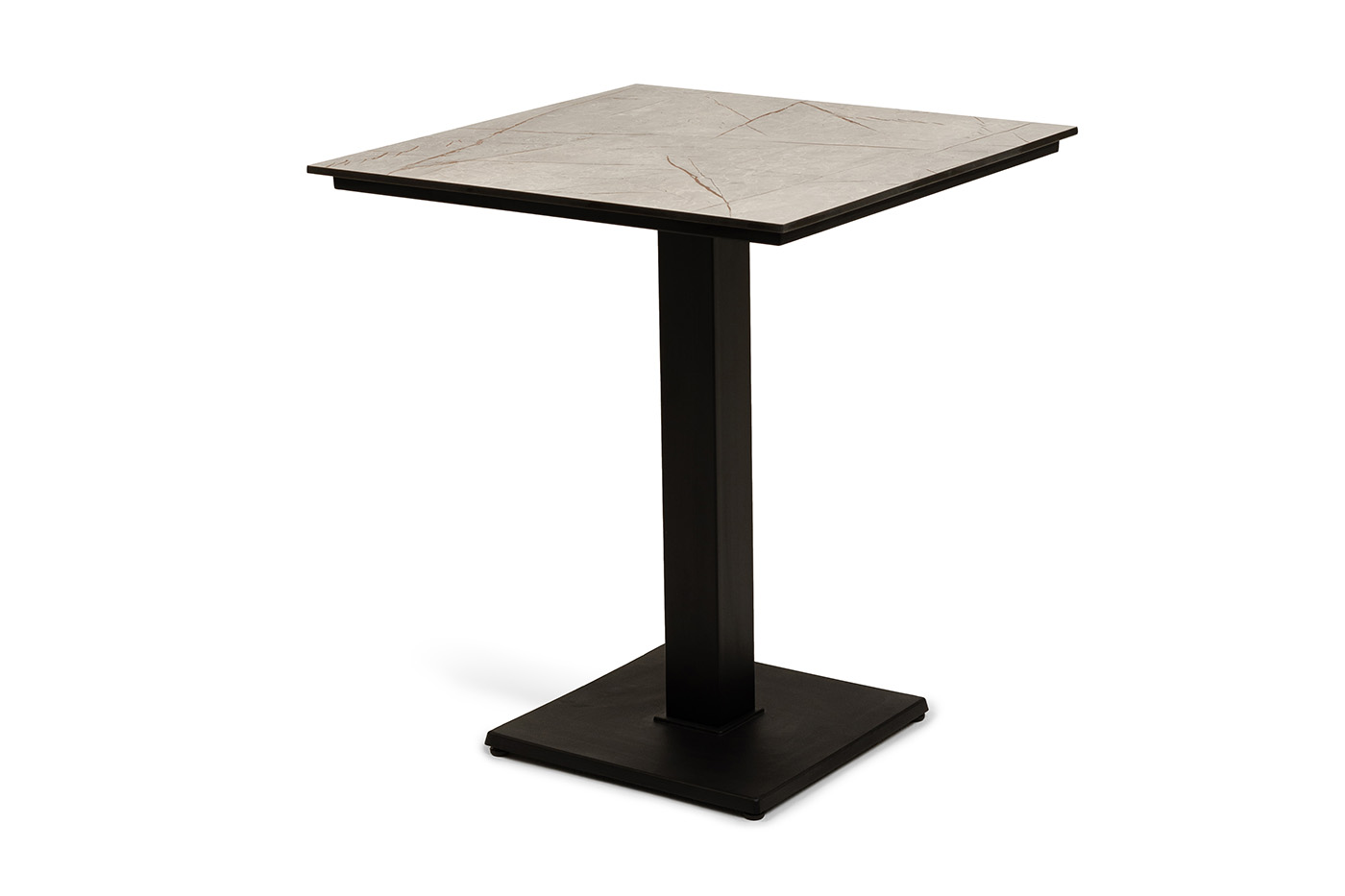 Квадратный интерьерный стол «Каффе» для двоих персон. Столешница выполнена из современного полимерного компакт-пластиком HPL, толщиной 12 мм. Этот материал устойчив к высоким температурам (можно ставить горячую посуду), пролитой жидкости, не требует специального ухода. Подстолье изготовлено из чугуна, благодаря чему столик очень устойчив на любых поверхностях.