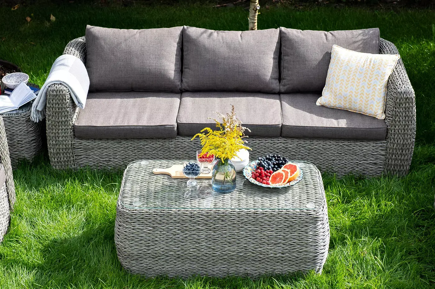 Журнальный столик «Кальяри» используется как в комплекте, так и в качестве отдельного предмета для сада, открытой террасы или балкона.