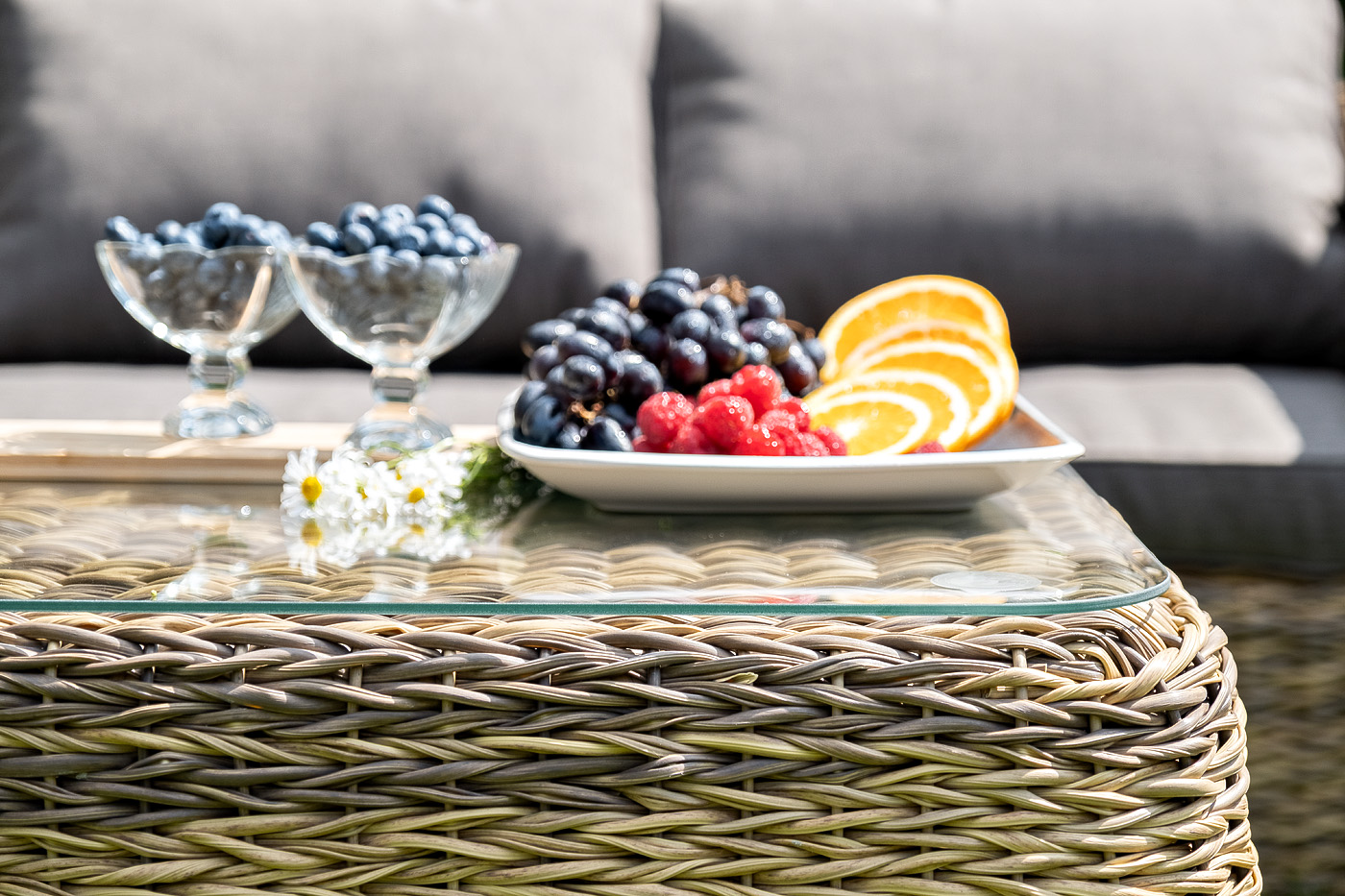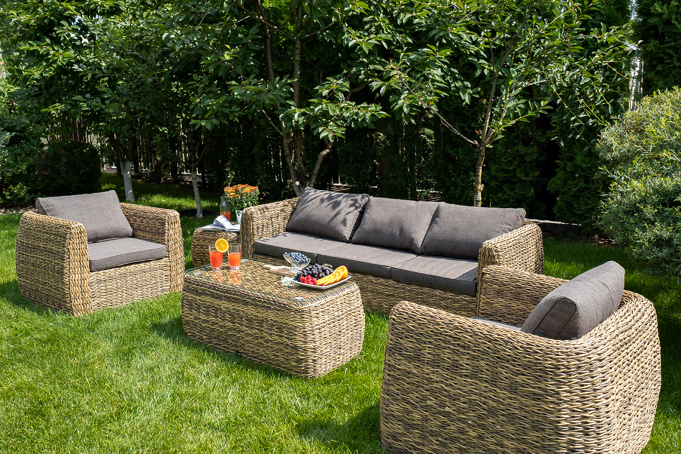 Журнальный столик «Кальяри» используется как в комплекте, так и в качестве отдельного предмета для сада, открытой террасы или балкона.