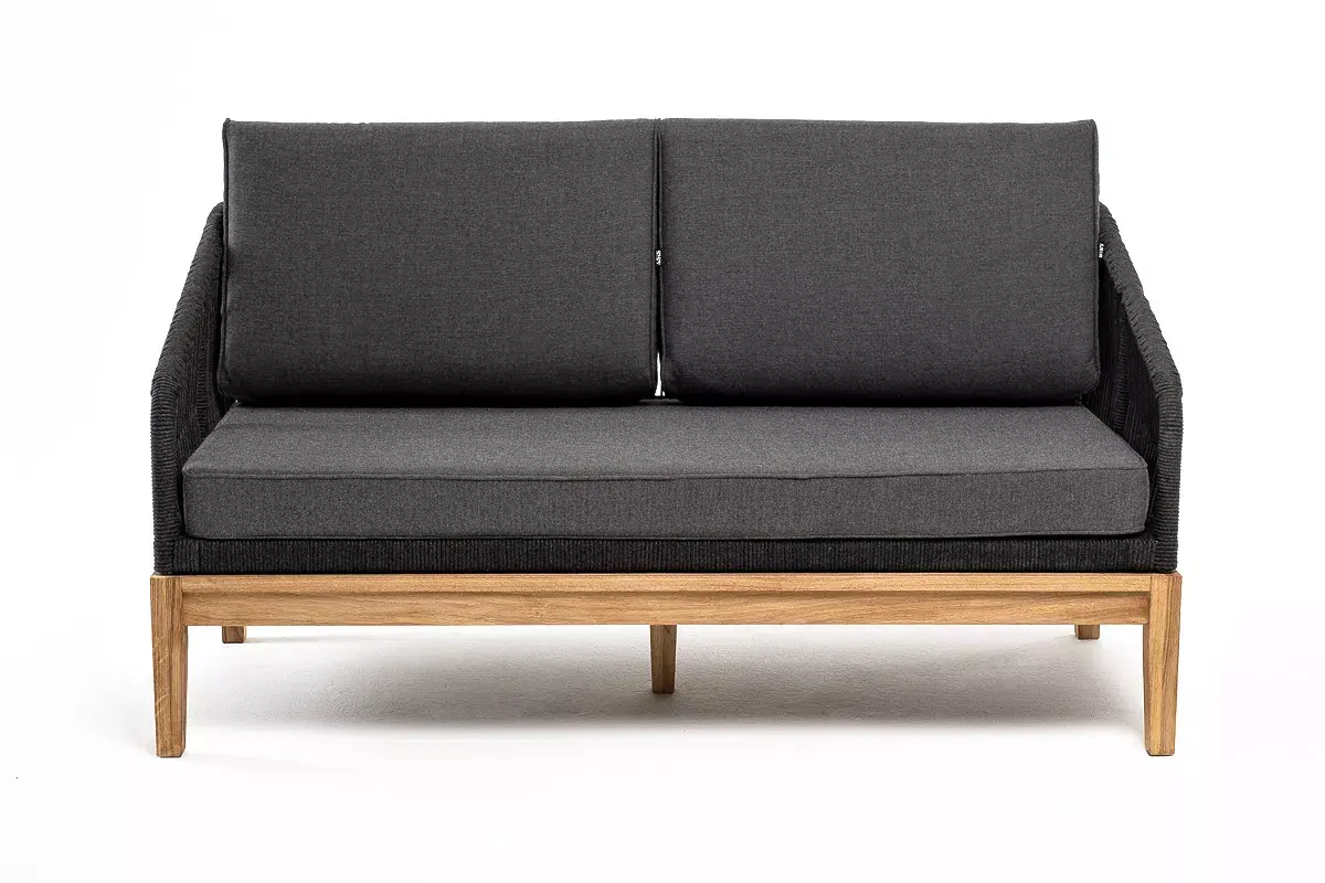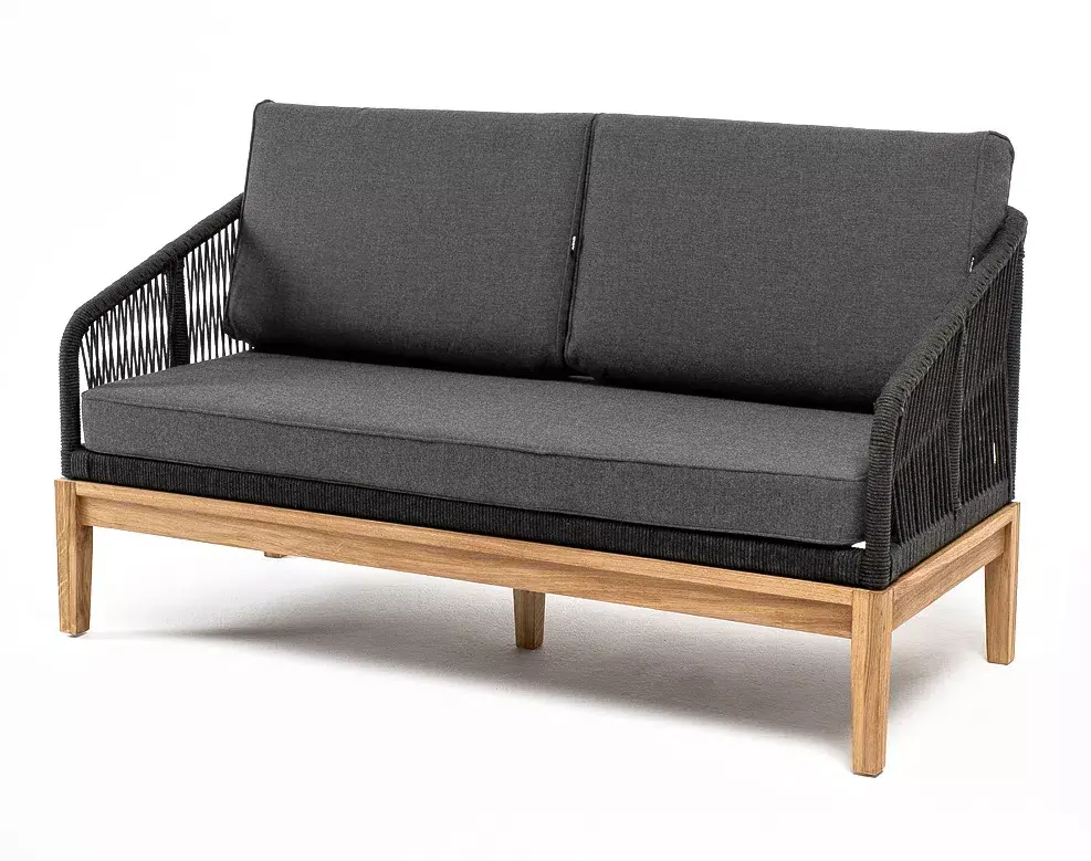 Двухместный диван «Канны» плетеный коричневым роупом - эластичными синтетическими лентами, выполненными из полиэфирных волокон.