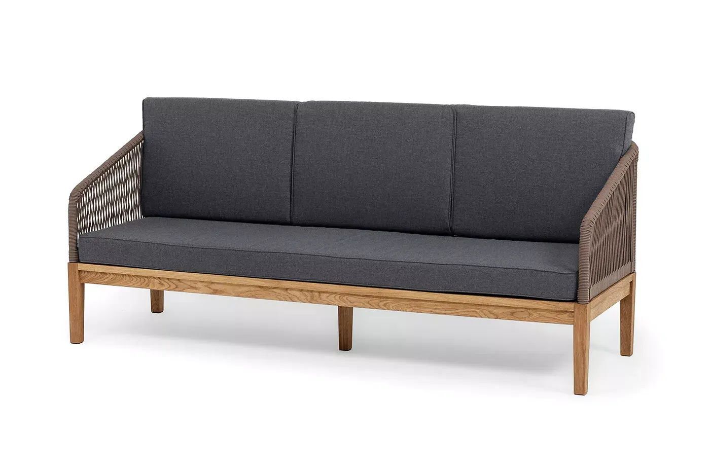 Трехместный диван «Канны» - отличный выбор для создания уютной атмосферы на террасе, в саду или на веранде. Выполнен из круглого роупа (эластичные ленты) в коричневом цвете, который придает ему роскошный вид.