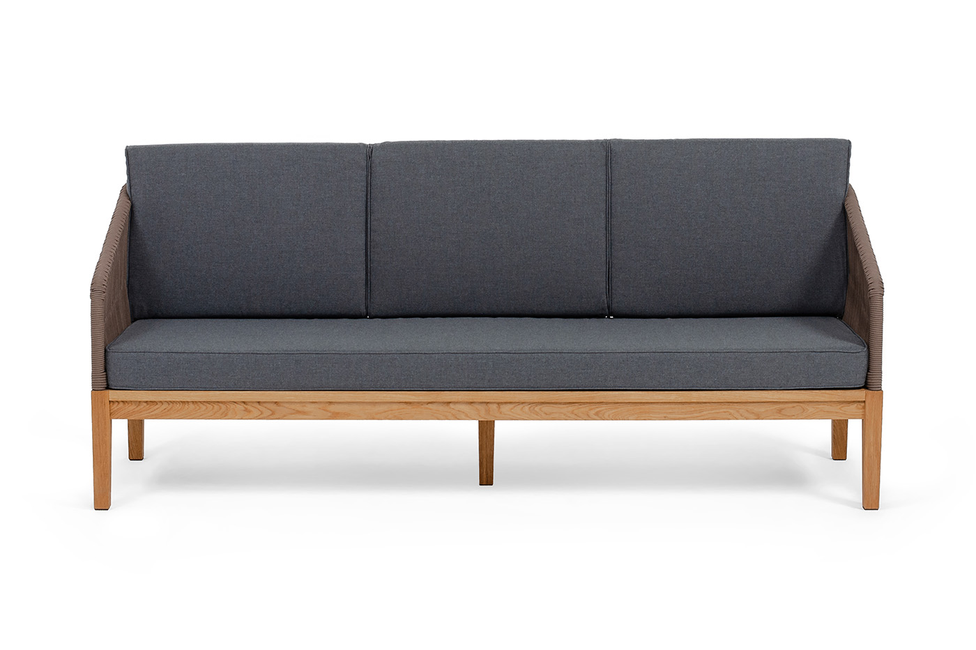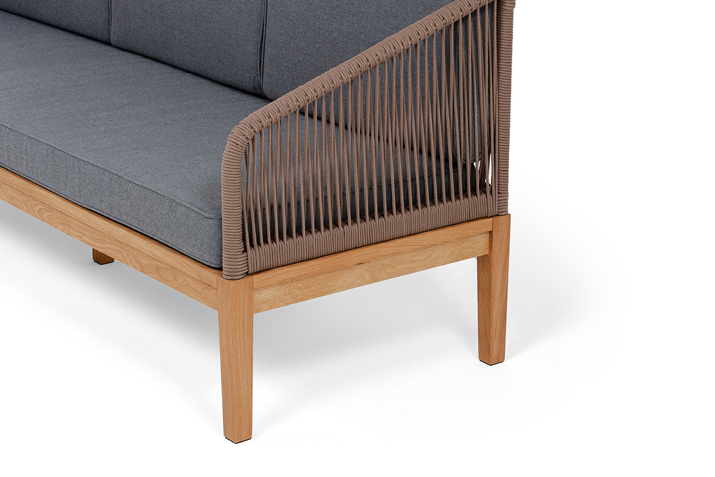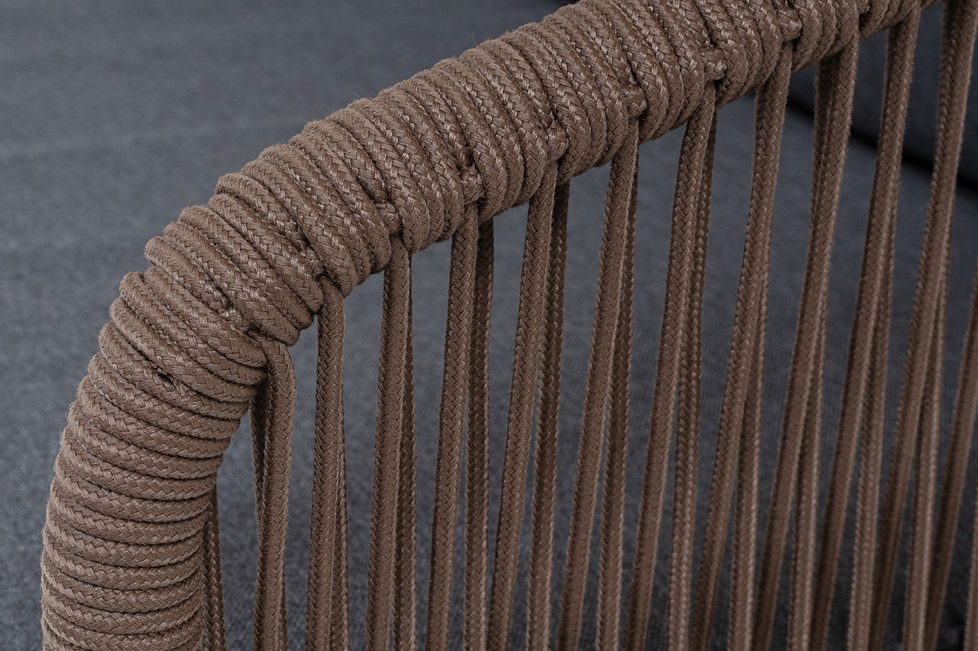 Трехместный диван «Канны» - отличный выбор для создания уютной атмосферы на террасе, в саду или на веранде. Выполнен из круглого роупа (эластичные ленты) в коричневом цвете, который придает ему роскошный вид.