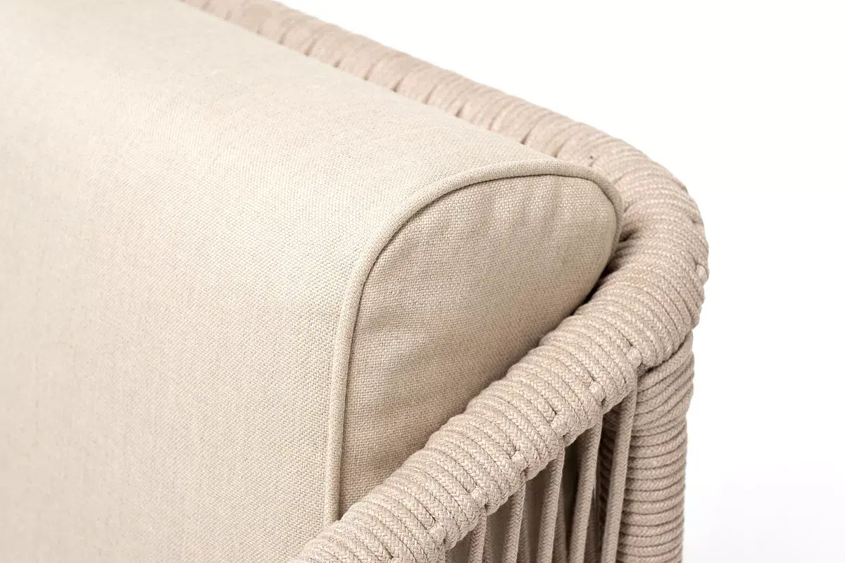 "Канны" кресло плетеное из роупа, каркас алюминий белый муар, роуп бежевый круглый, ткань бежевая 15052
