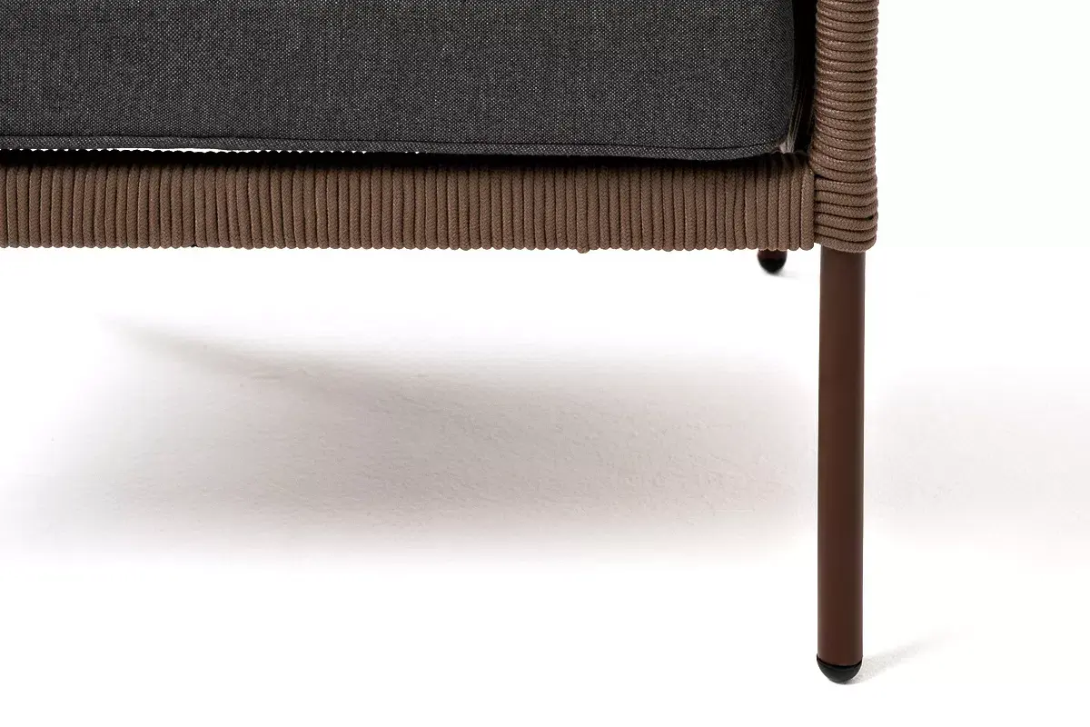 Коричневый (RAL8016) цвет каркаса и плетения придают продукту элегантный и современный вид, который легко впишется в любой экстерьер. Порошковая износостойкая краска гарантирует сохранение яркости цвета и защиту от ржавчины.