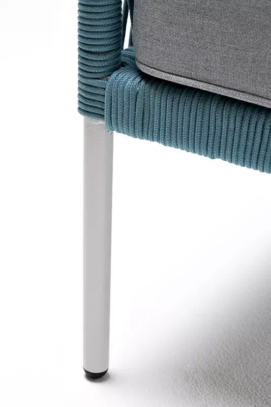 Каркас выполнен из алюминия, который окрашен светло-серой износостойкой порошковой краской. Это обеспечивает прочность и долгий срок службы кресла. Фактура покрытия - муар, придающая каркасу текстурную глубину и эстетику.