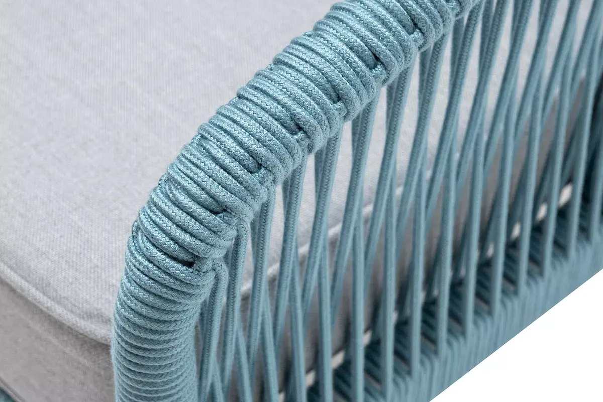 Плетение выполнено из прочного роупа бирюзового цвета, который добавляет яркости и живописности в ваш интерьер.