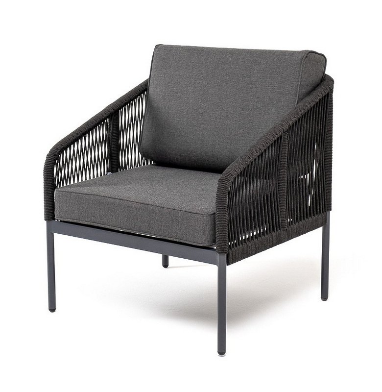 Плетеное кресло «Канны» идеально подходит для комфортного отдыха в саду или на балконе. Прочный каркас из алюминия окрашен в насыщенный темно-серый (RAL7024) цвет порошковой износостойкой краской. Покрытие прочное, устойчивое к возникновению сколов и ржавчины.