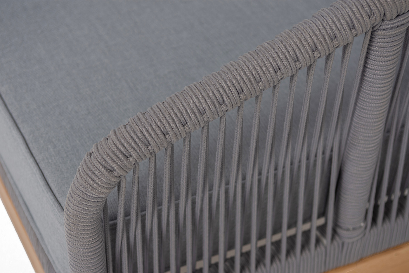 На боковинах - оплетка из синтетических лент, выполненных из полиэфирных волокон высокой прочности. Цвет плетения - светло-серый. Основание - бук.