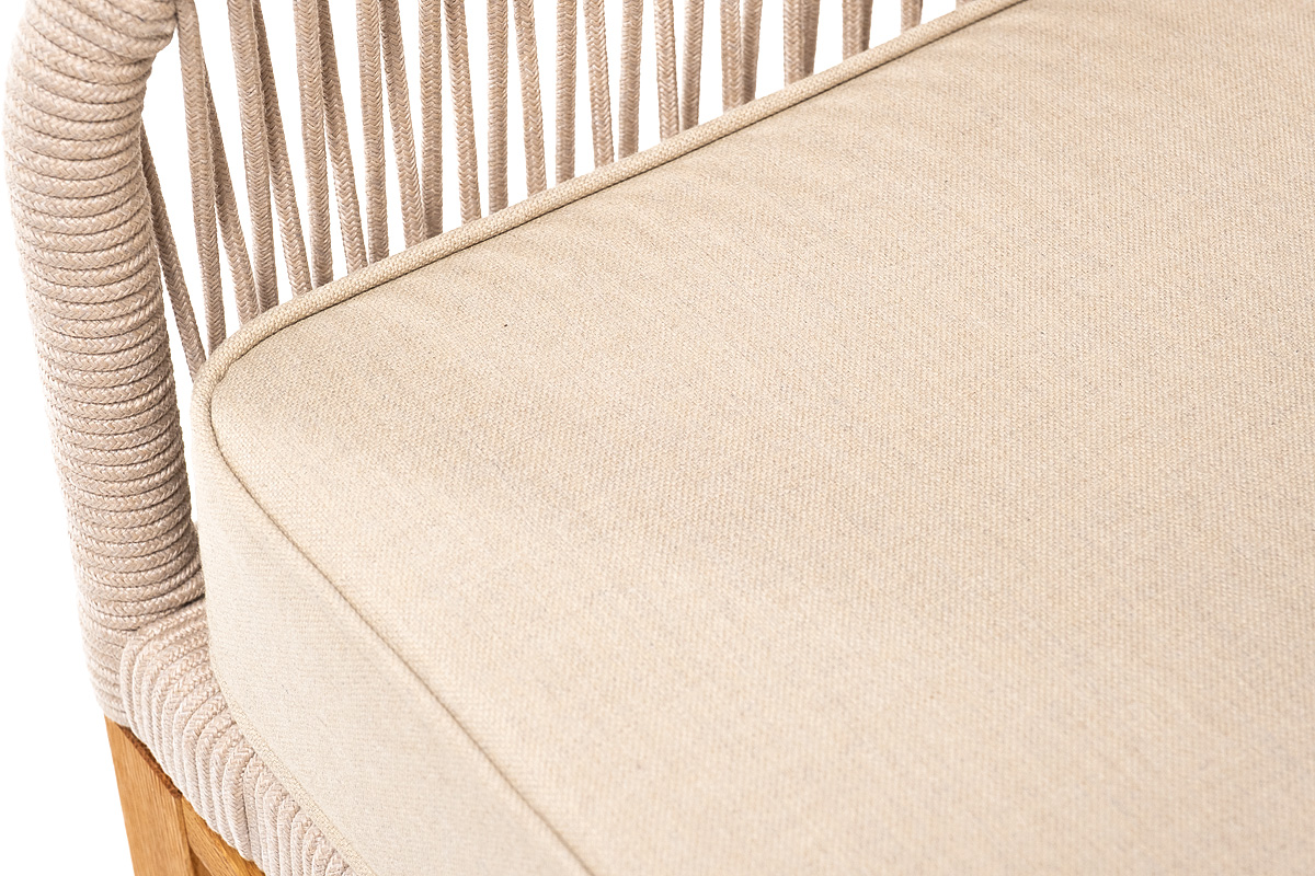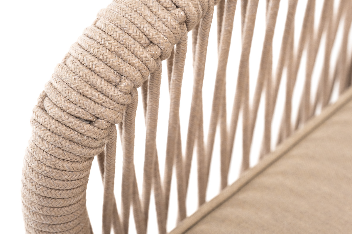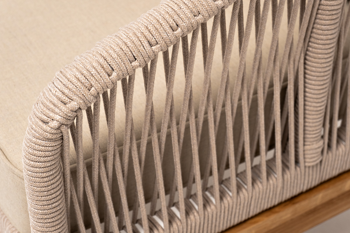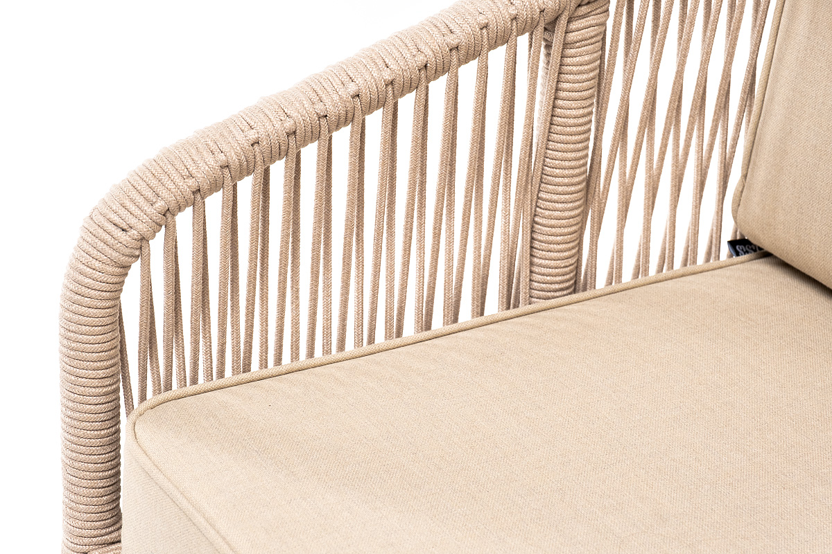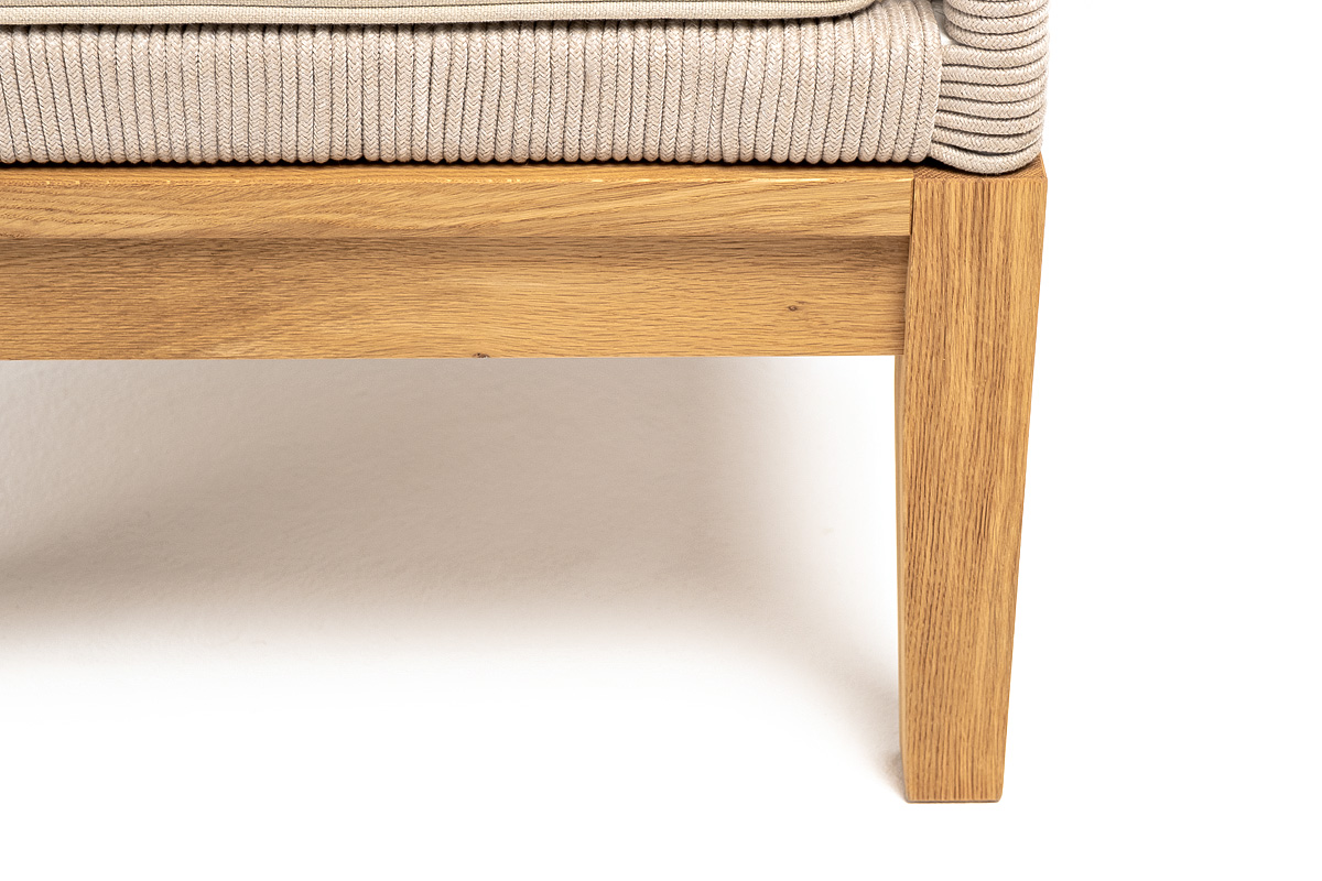 На боковинах - оплетка из синтетических лент, выполненных из полиэфирных волокон высокой прочности. Цвет плетения - бежевый. Основание - дуб.