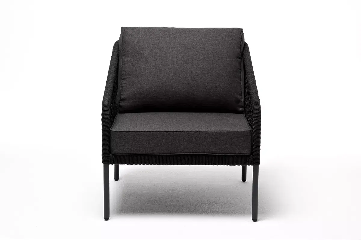 Кресло «Канны» с узловым плетением из роупа идеально подходит для комфортного отдыха в саду или на веранде.