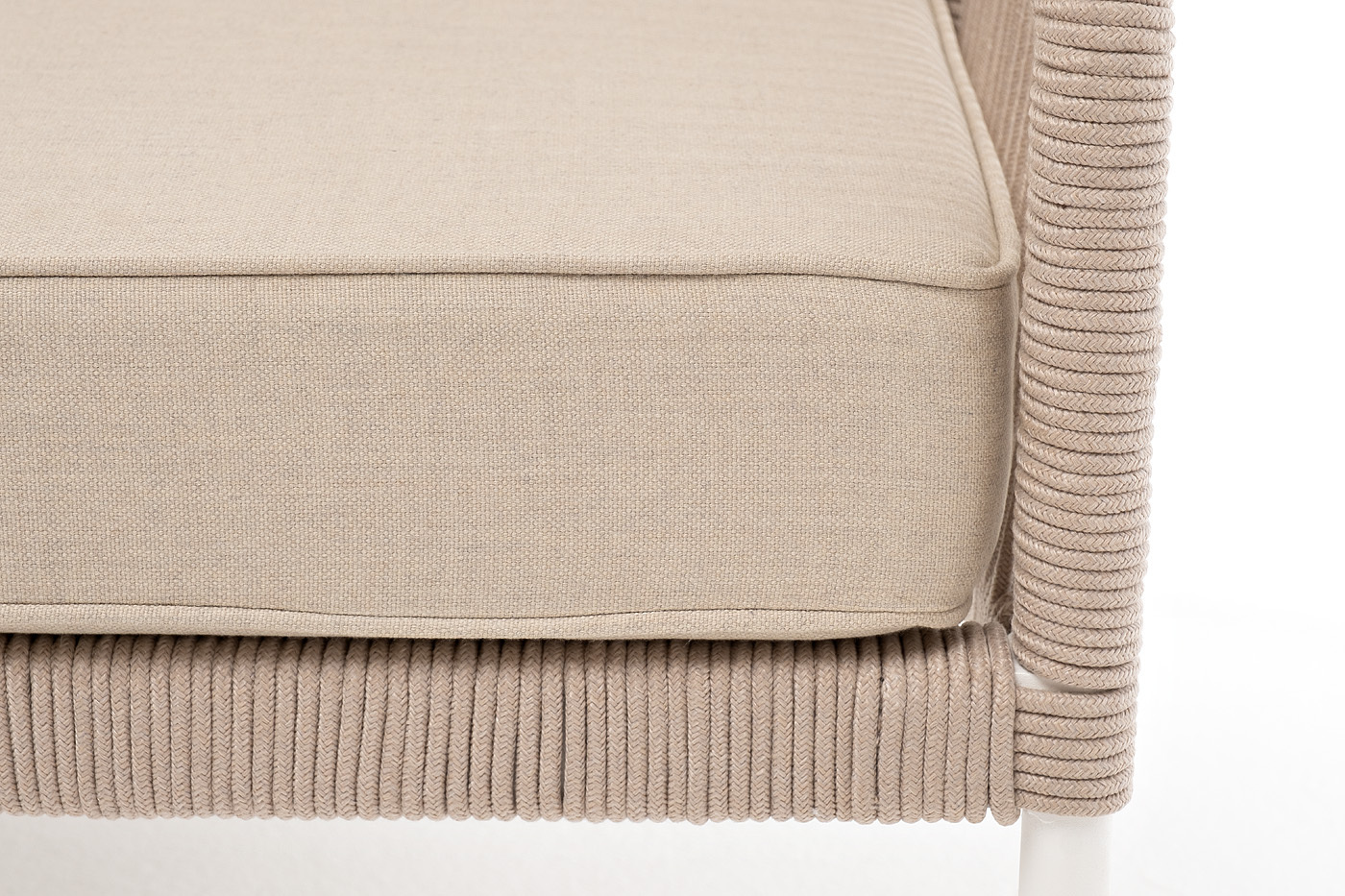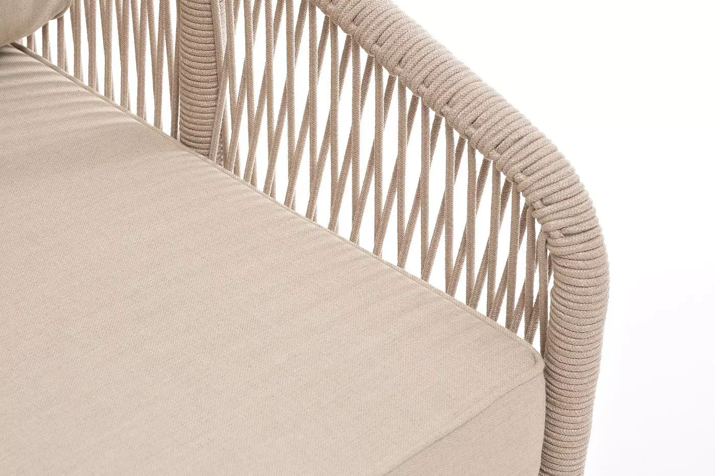 Модуль имеет алюминиевый каркас, окрашенный порошковой краской в белый цвет. Боковины каркаса вручную оплетены роупом - эластичными синтетическими лентами, изготовленными из высокопрочных полиэфирных волокон. Цвет оплетки - бежевый.