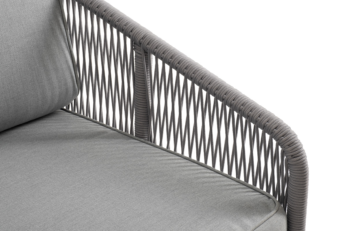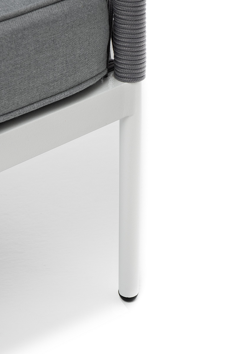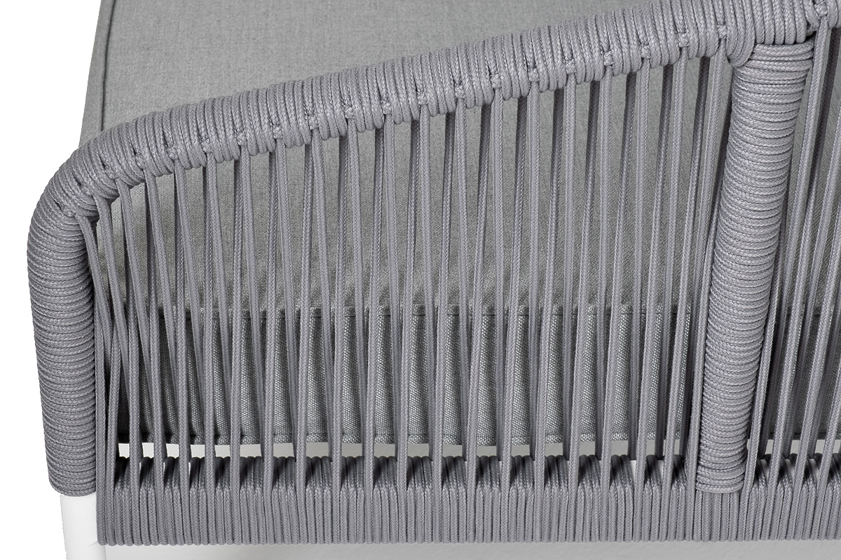 Модуль имеет алюминиевый каркас, окрашенный порошковой краской в белый цвет. Боковины каркаса вручную оплетены роупом - эластичными синтетическими лентами, изготовленными из высокопрочных полиэфирных волокон. Цвет оплетки - светло-серый.