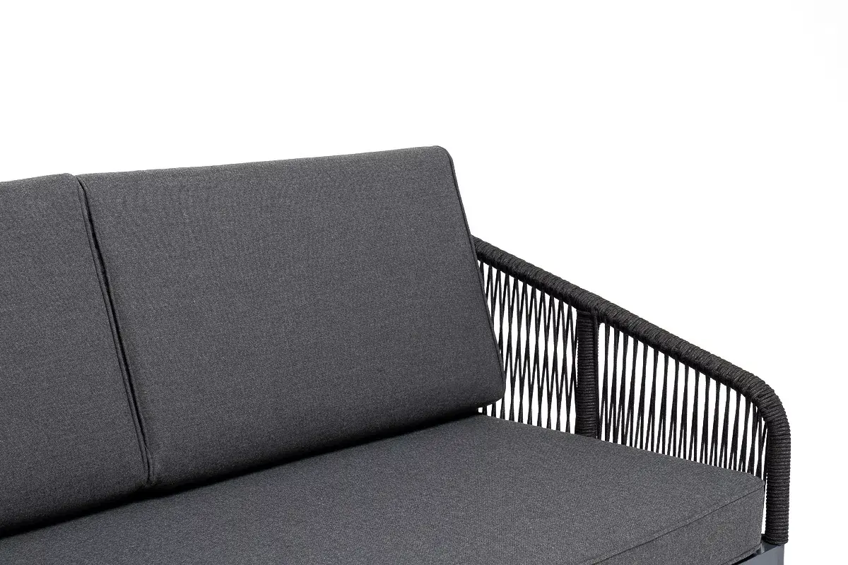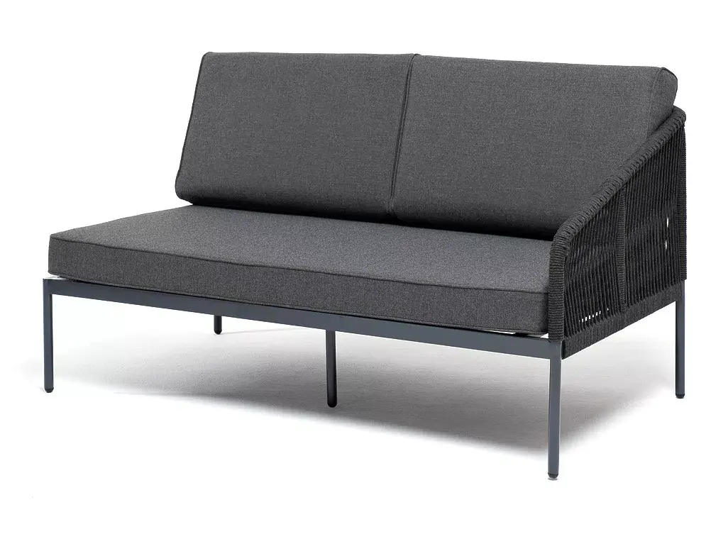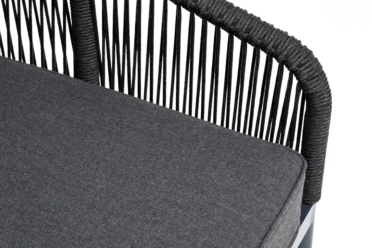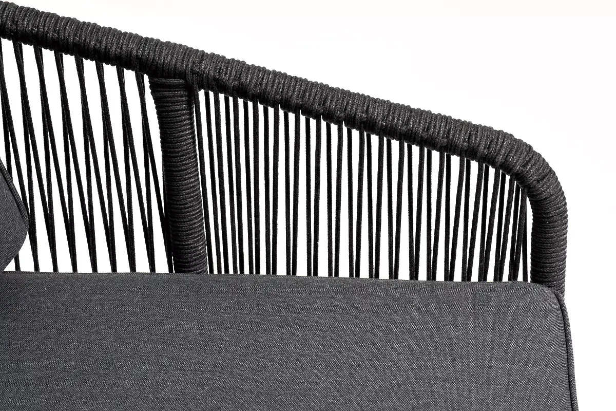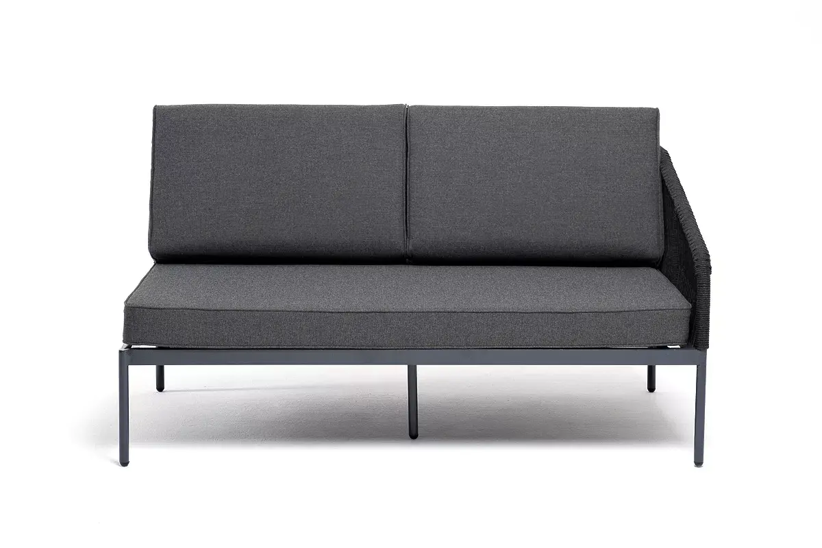 Модуль имеет алюминиевый каркас, окрашенный порошковой краской в темно-серый (RAL7024) цвет. Боковины каркаса вручную оплетены роупом - эластичными синтетическими лентами, изготовленными из высокопрочных полиэфирных волокон. Цвет оплетки - темно-серый.