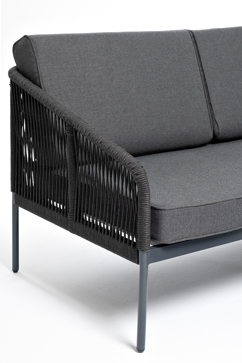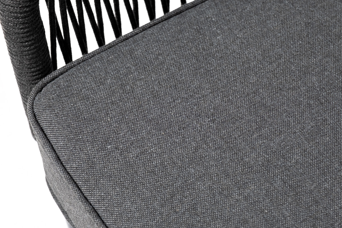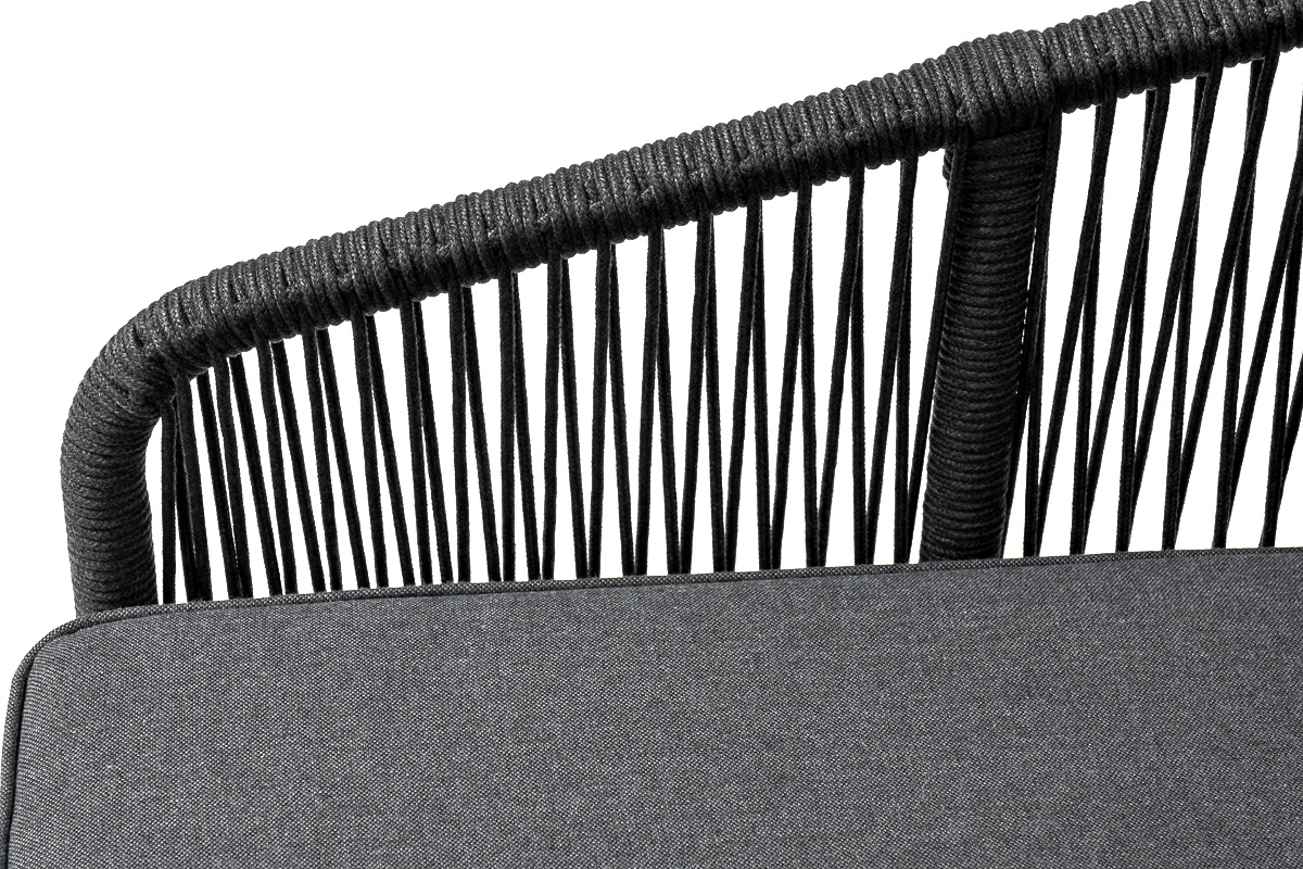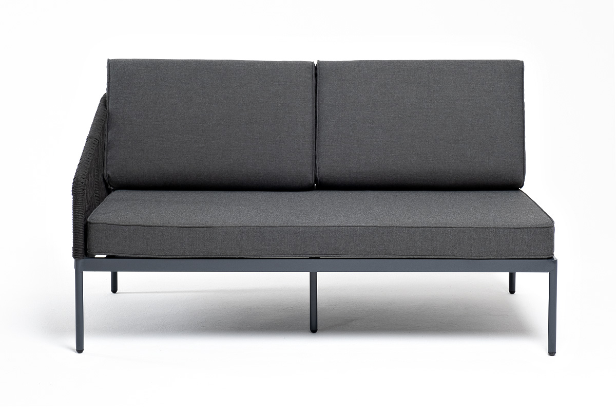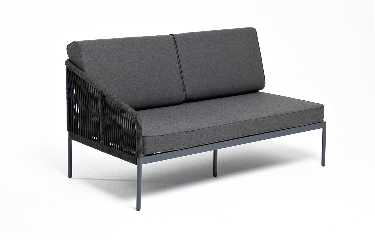 Модуль имеет алюминиевый каркас, окрашенный порошковой краской в темно-серый (RAL7024) цвет. Боковины каркаса вручную оплетены роупом - эластичными синтетическими лентами, изготовленными из высокопрочных полиэфирных волокон. Цвет оплетки - темно-серый.