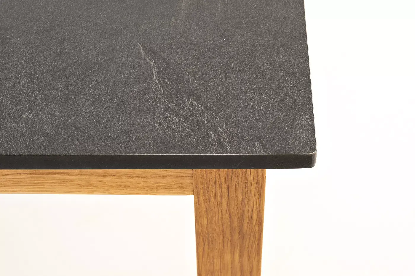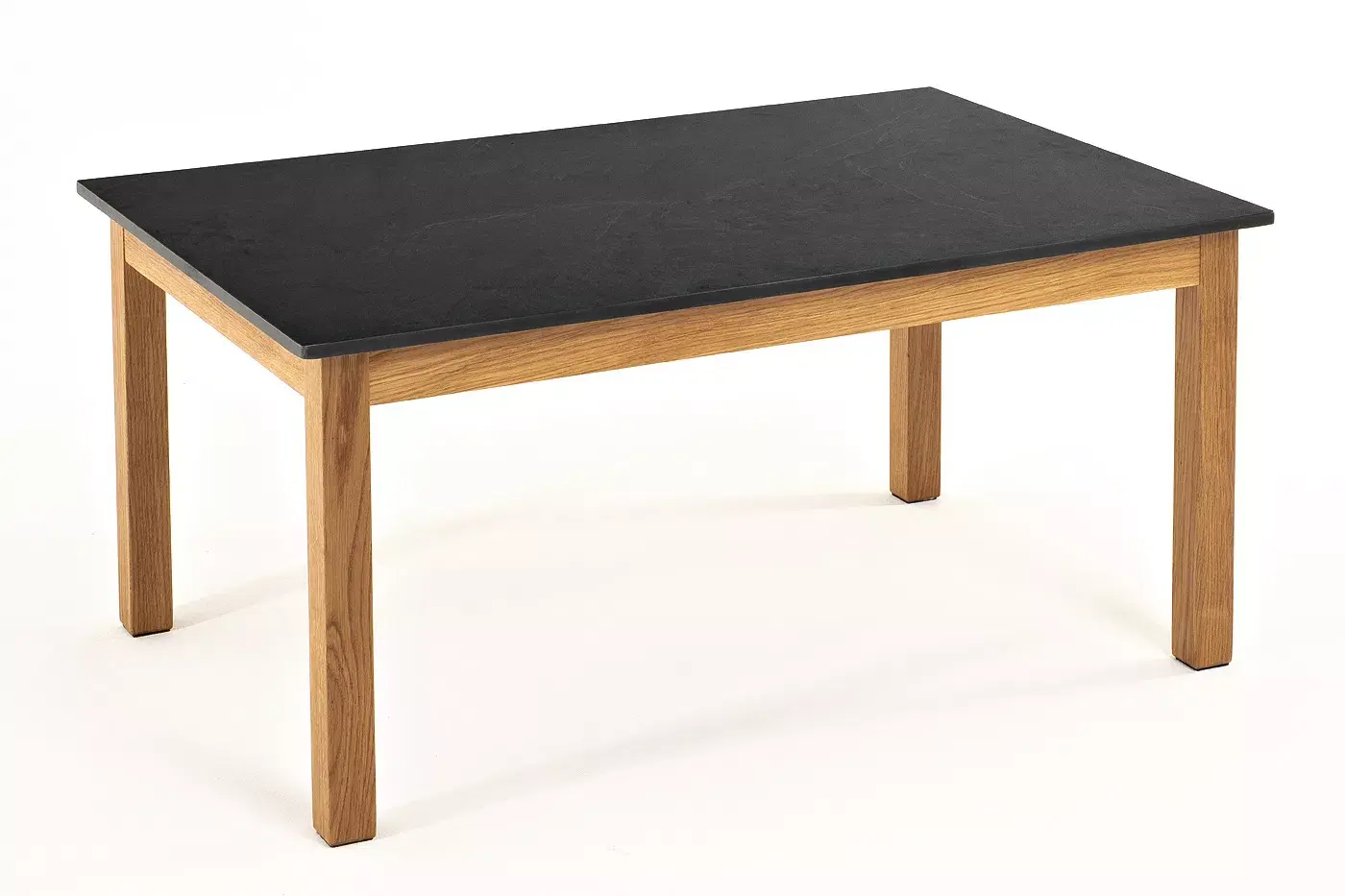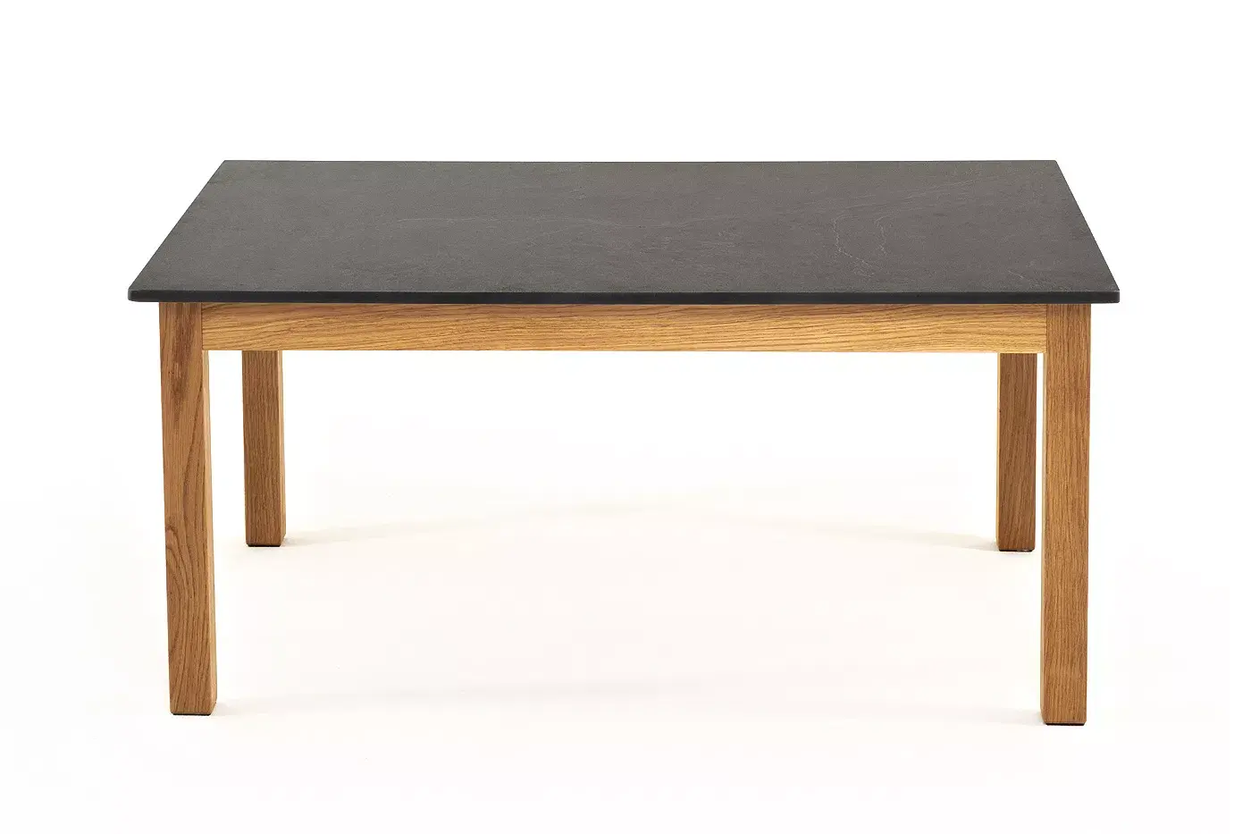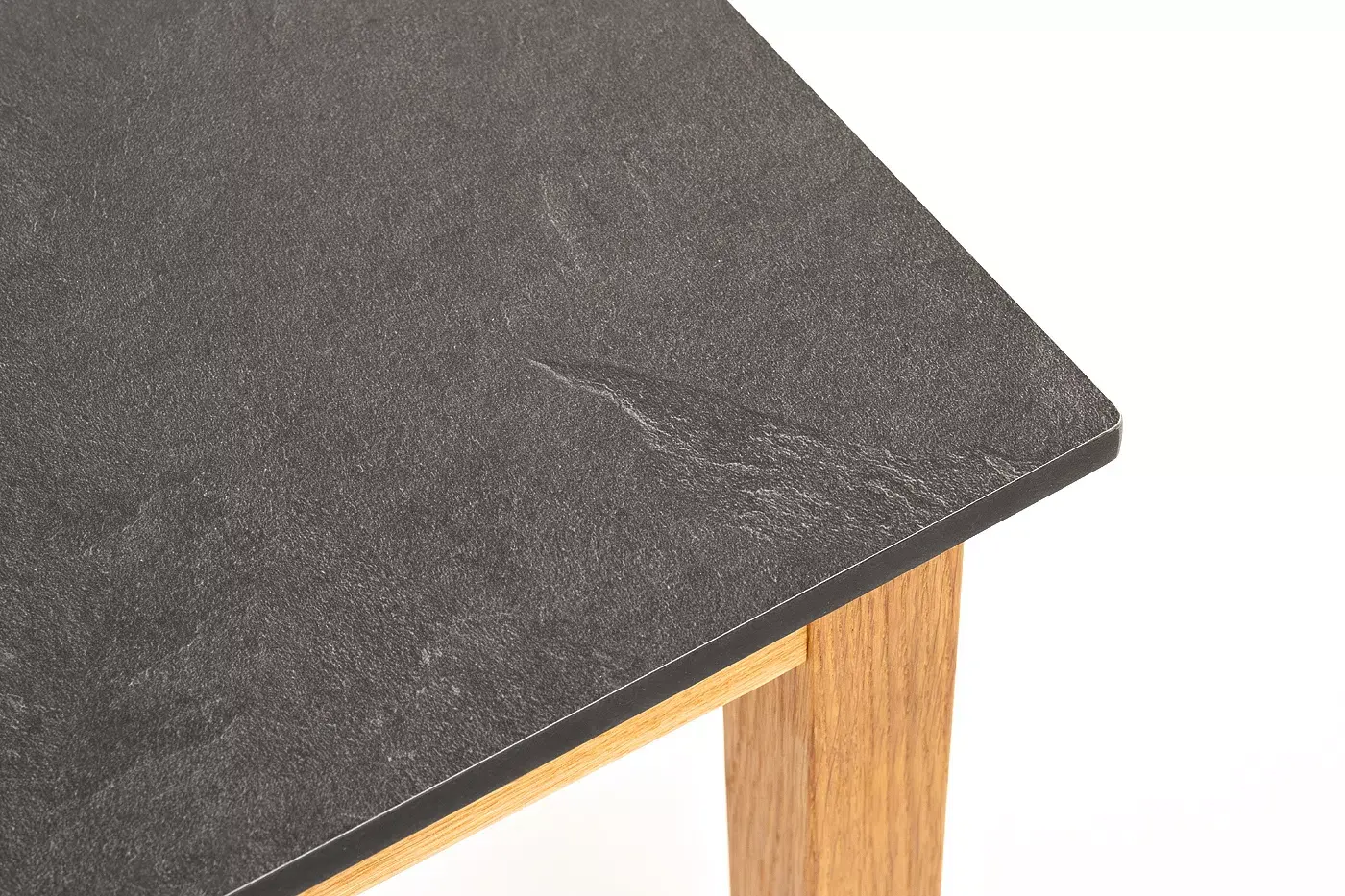 Основание журнального столика - дуб. Столешница - из высококачественного монолитного компакт-пластик HPL, цвет «серый гранит». Устойчив к царапинам и другим механическим повреждениям, что позволяет сохранить внешний вид стола на долгое время.