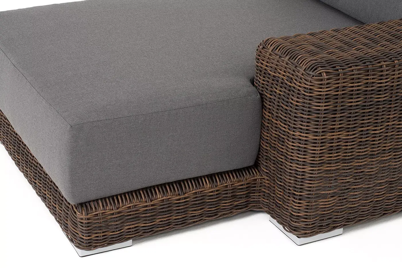 «Капри» плетеная кушетка из искусственного ротанга коричневого оттенка прекрасно дополнит пространство для отдыха на открытом воздухе.