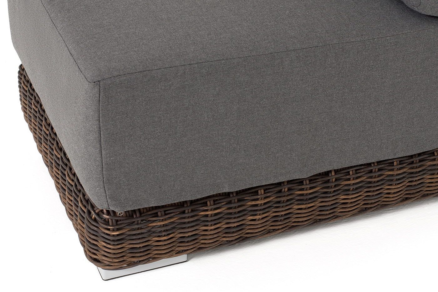 Прямой модуль «Капри», выполненный из круглого искусственного ротанга коричневого оттенка, позволяет использовать не только как самостоятельный элемент, но и быть частью лаунж-зоны, в которую данная модель превосходно интегрируется.