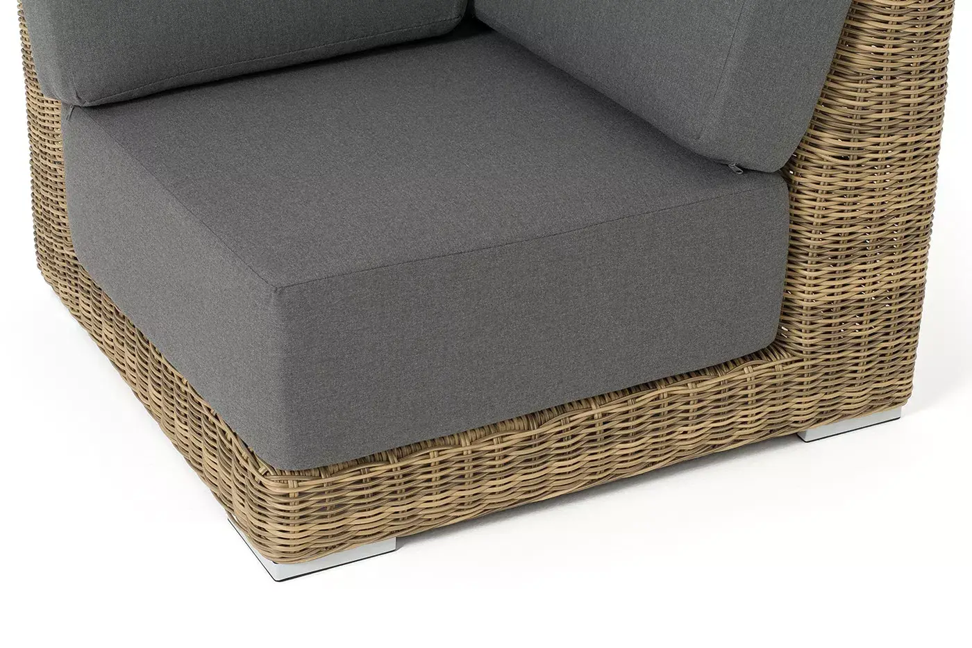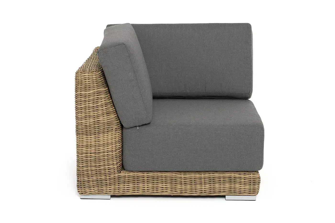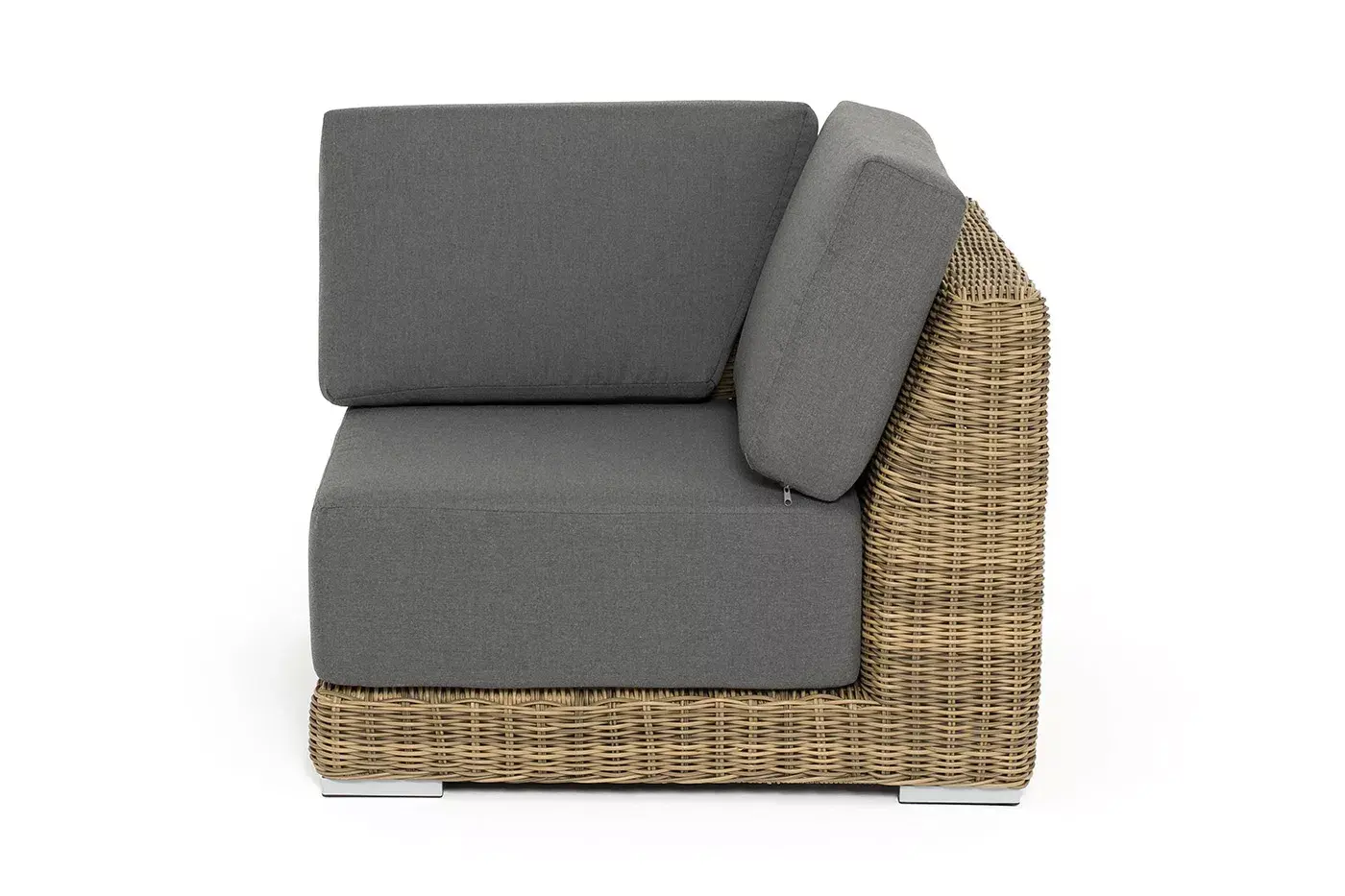 Угловой модуль из круглого искусственного ротанга «Капри» является одним из звеньев для создания лаунж зоны по индивидуальным потребностям.