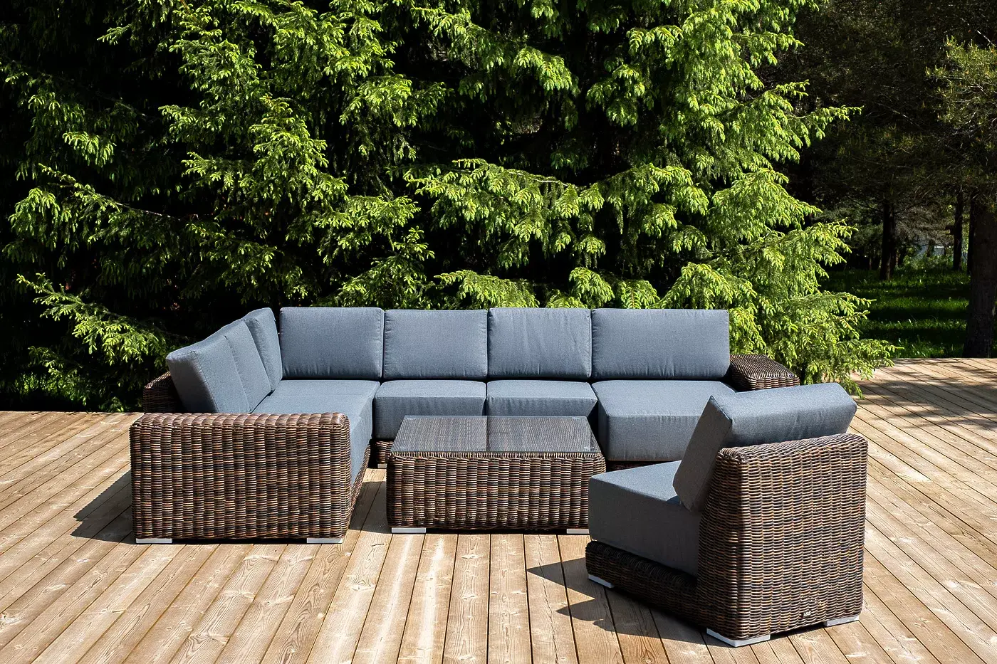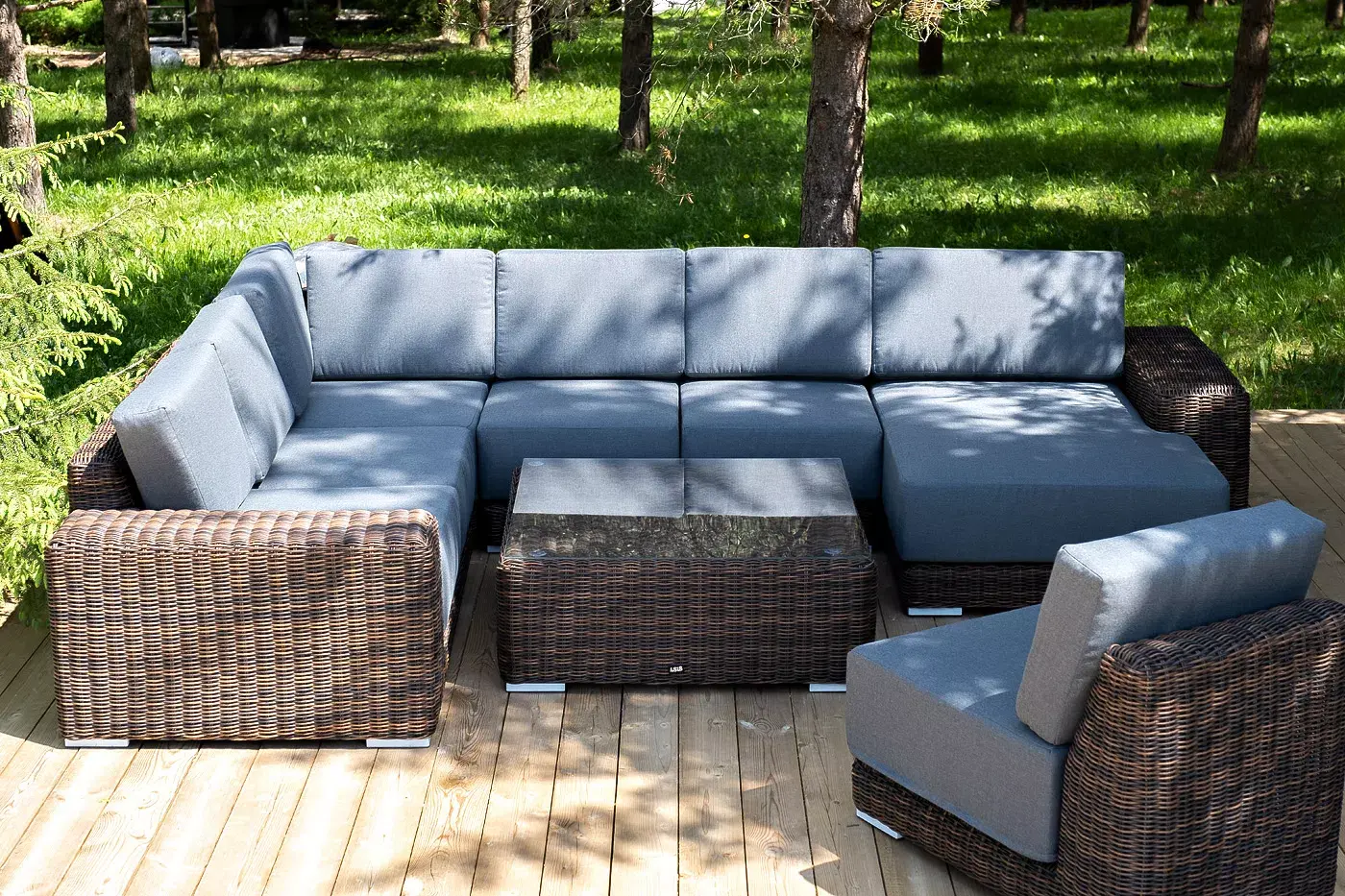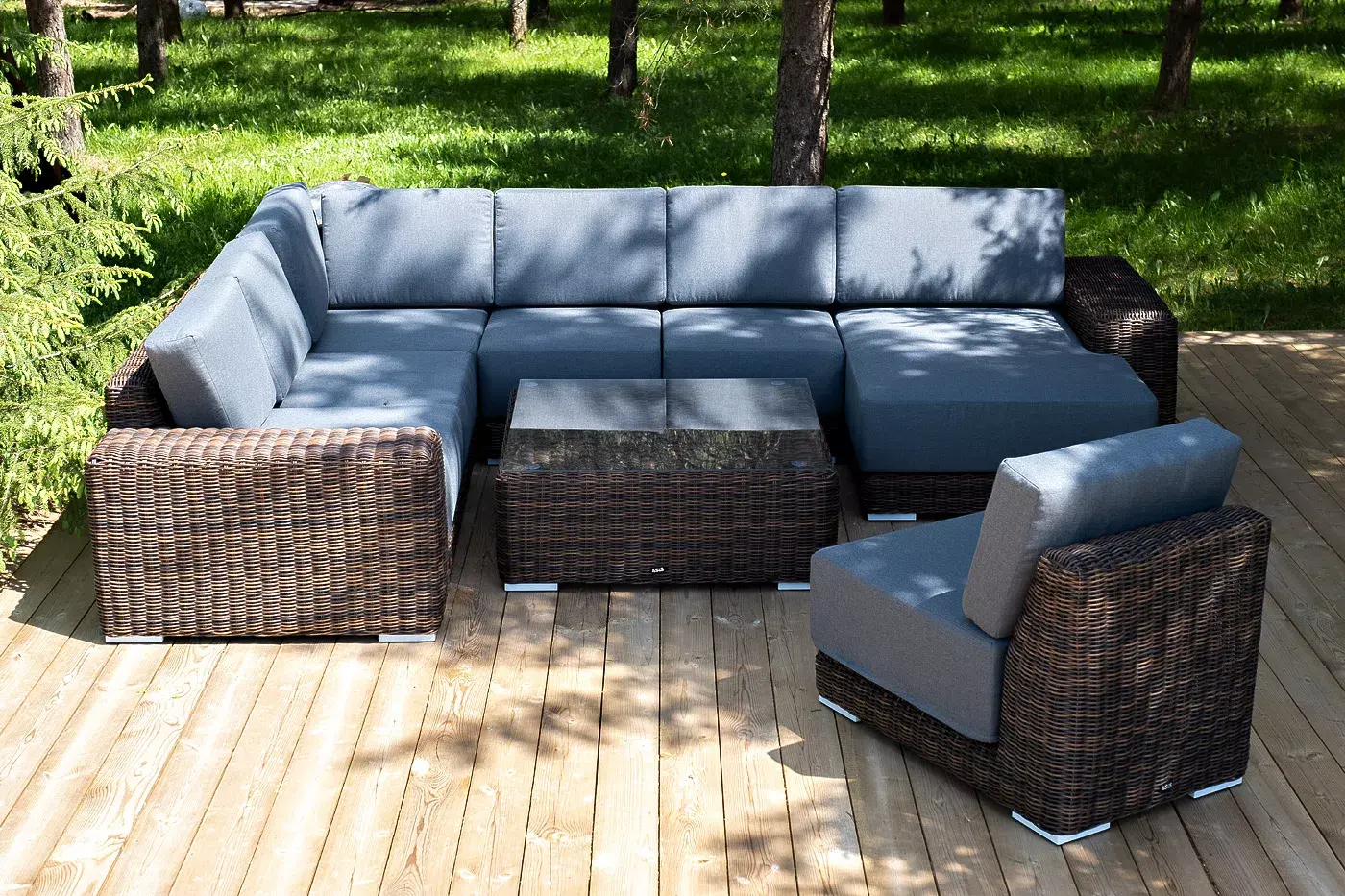 Составная и легко трансформирующаяся лаунж-зона «Капри» гармонично дополнит зону отдыха на частной территории.
