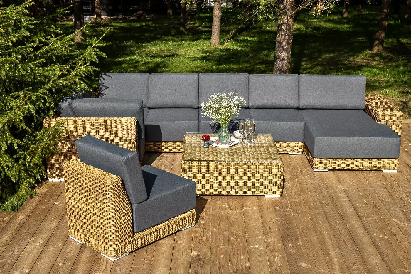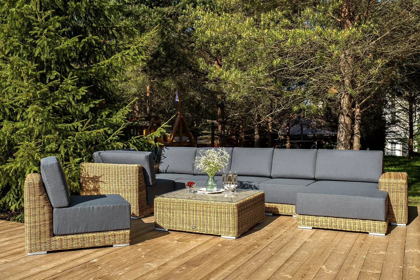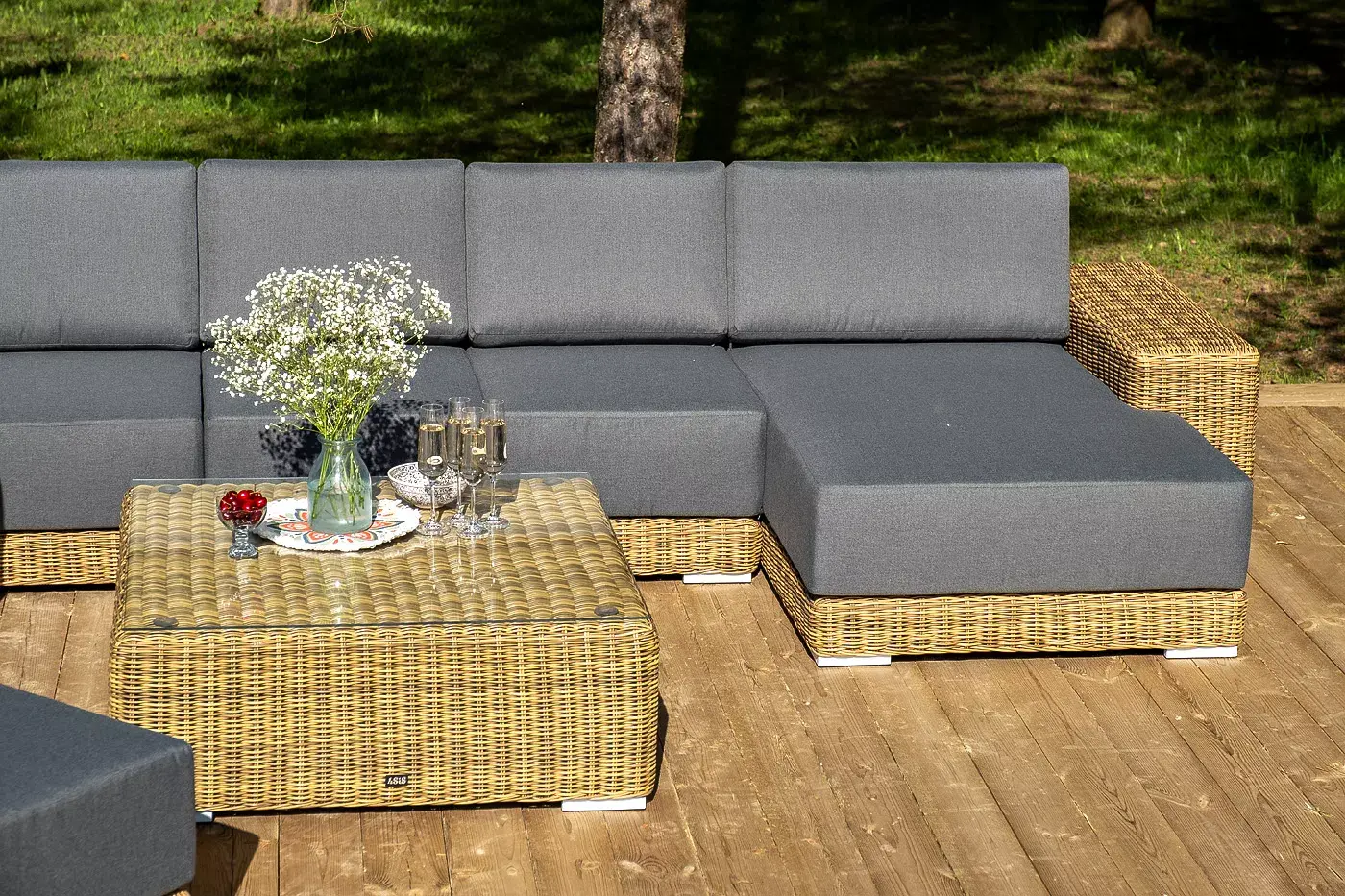 Составная и легко трансформирующаяся лаунж-зона «Капри» гармонично дополнит зону отдыха на частной территории.